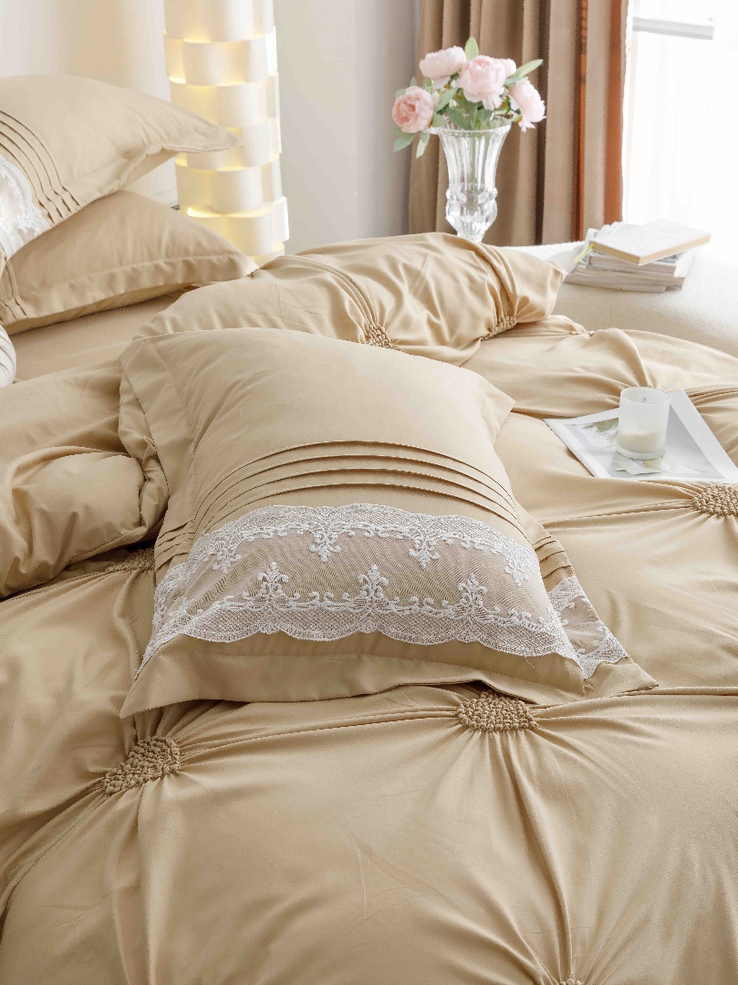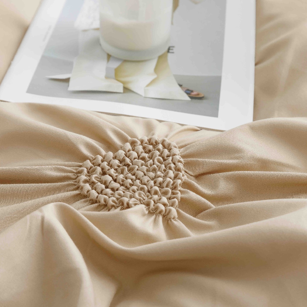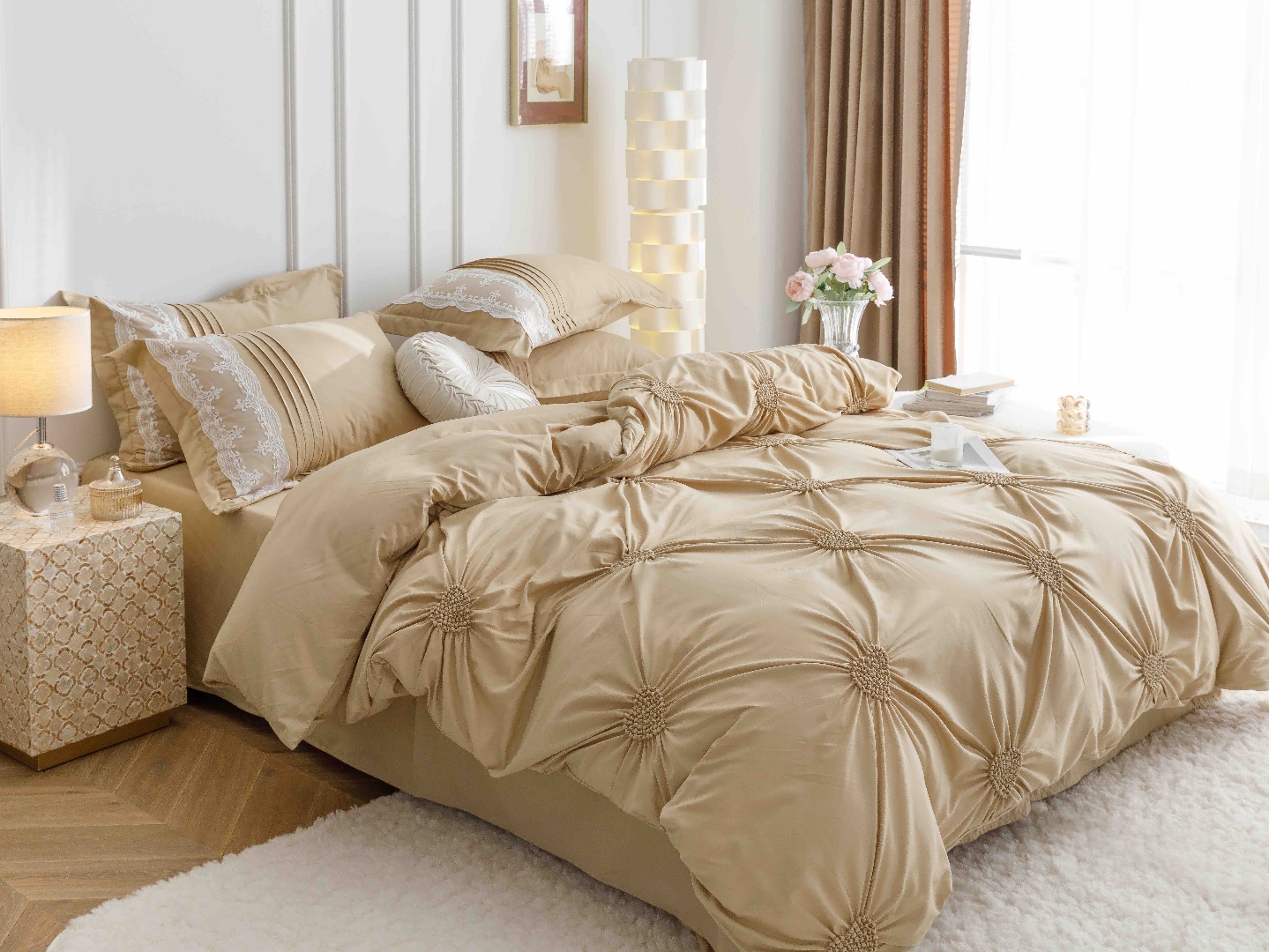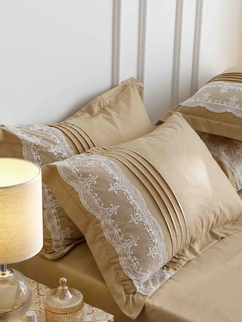 Lenjerie de Pat 6 Piese – Finet Soft Touch cu Pliuri Brodate in forma de Inimioara si Dantela Delicata O lenjerie de pat care imbina eleganta detaliilor brodate cu rasfatul unui material ultra-moale – Finet Soft Touch, acum si mai fin la atingere. Designul cu inimioare brodate si pliuri fine, lucrate atent, este completat de dantela rafinata aplicata pe o latura a fetelor de perna, pentru un efect vizual deosebit si un plus de rafinament in orice dormitor. Material premium: Finet
