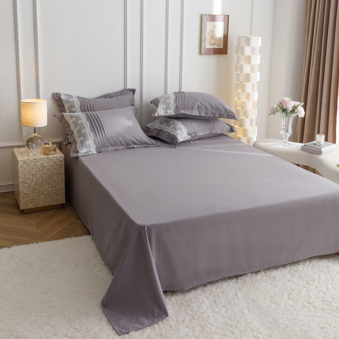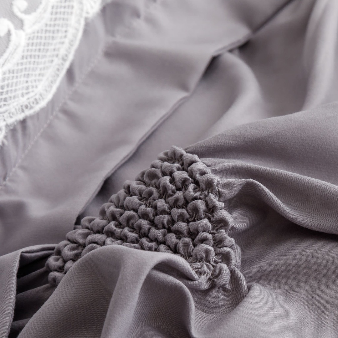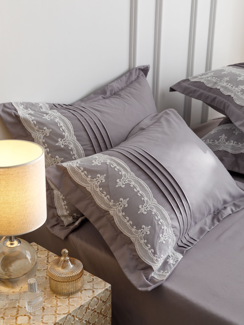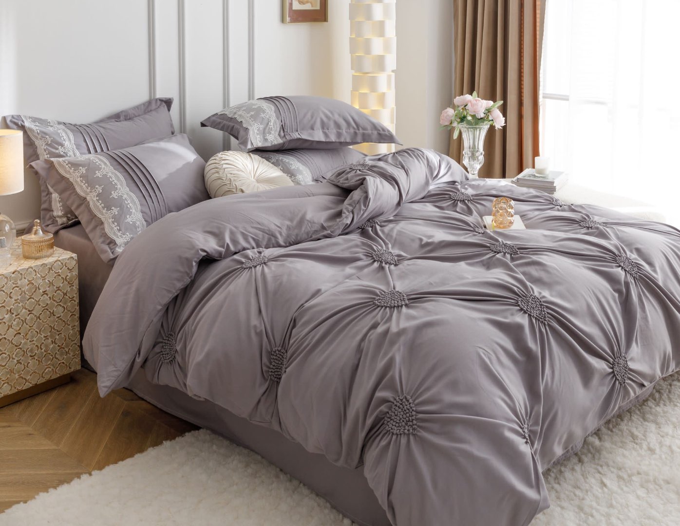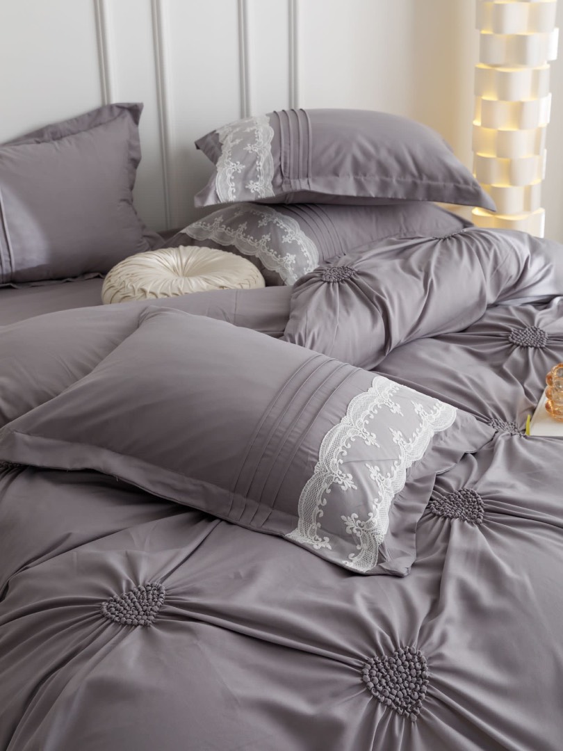 Lenjerie de Pat Premium, JOJO HOME, Finet Soft Touch, cu Inimioare din Pliuri Brodate, si Dantela Delicata, 6 Piese, Nesifonabila si Durabila, Gri deschis