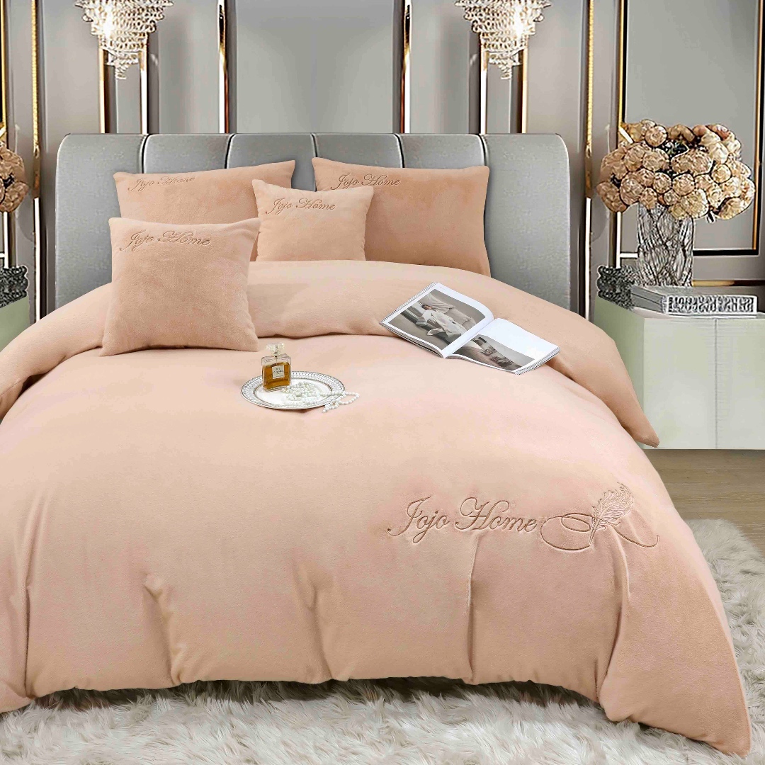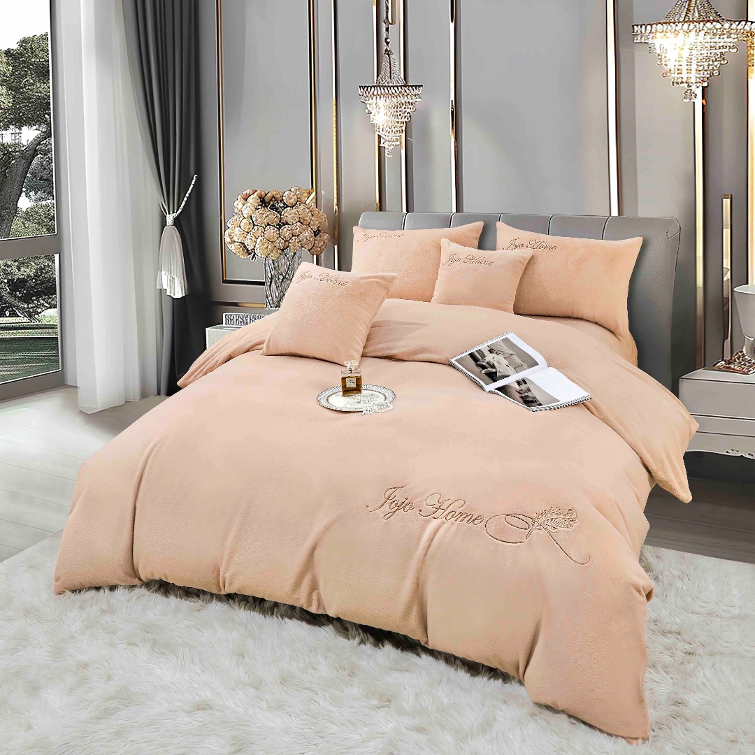 Lenjerie de pat, Soft Touch, Jojo Home, cu Blanita Short Hair, Rabbit, 200x230 cm, 6 piese, Cappuccino