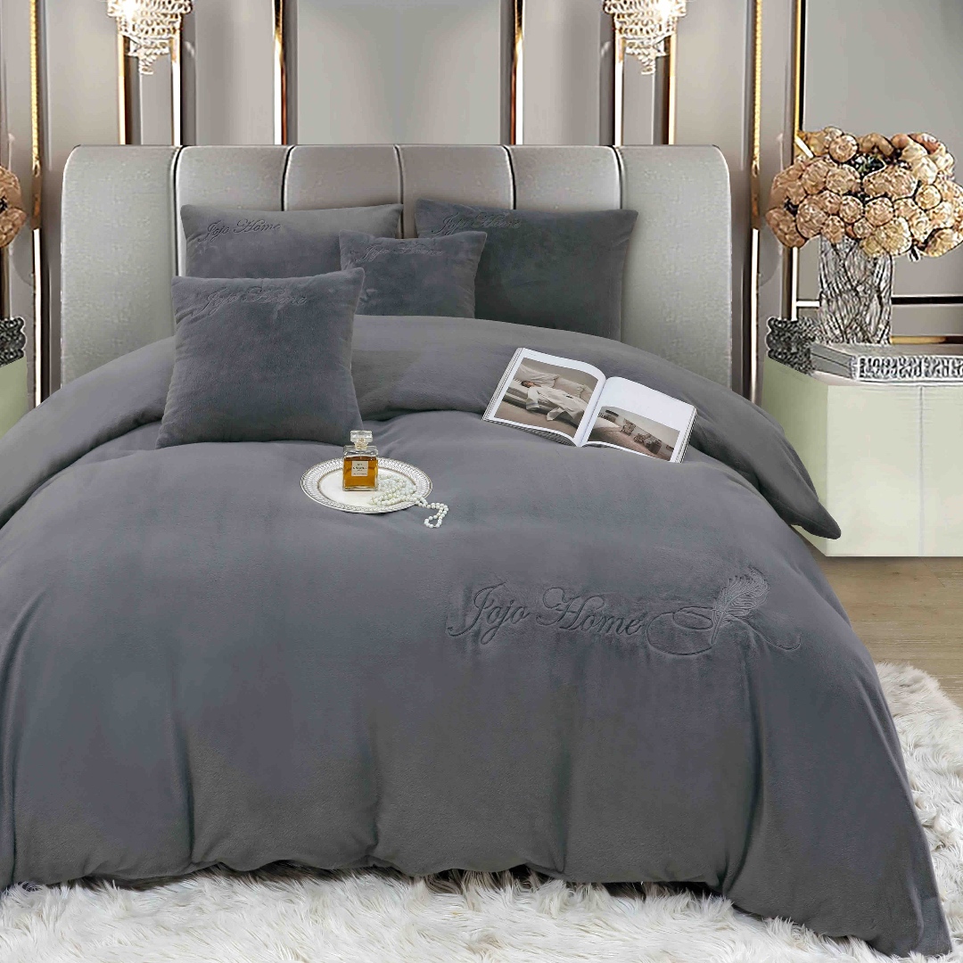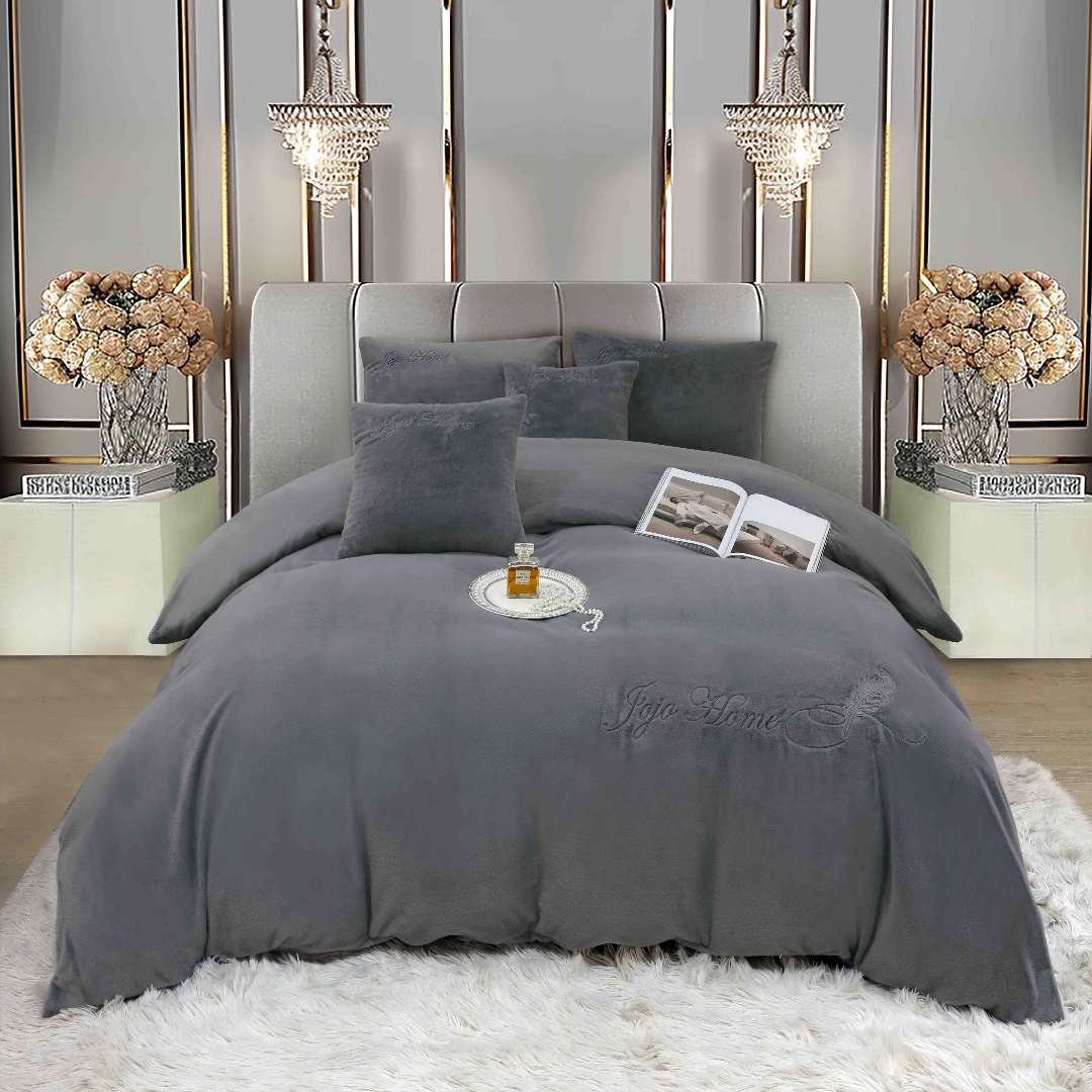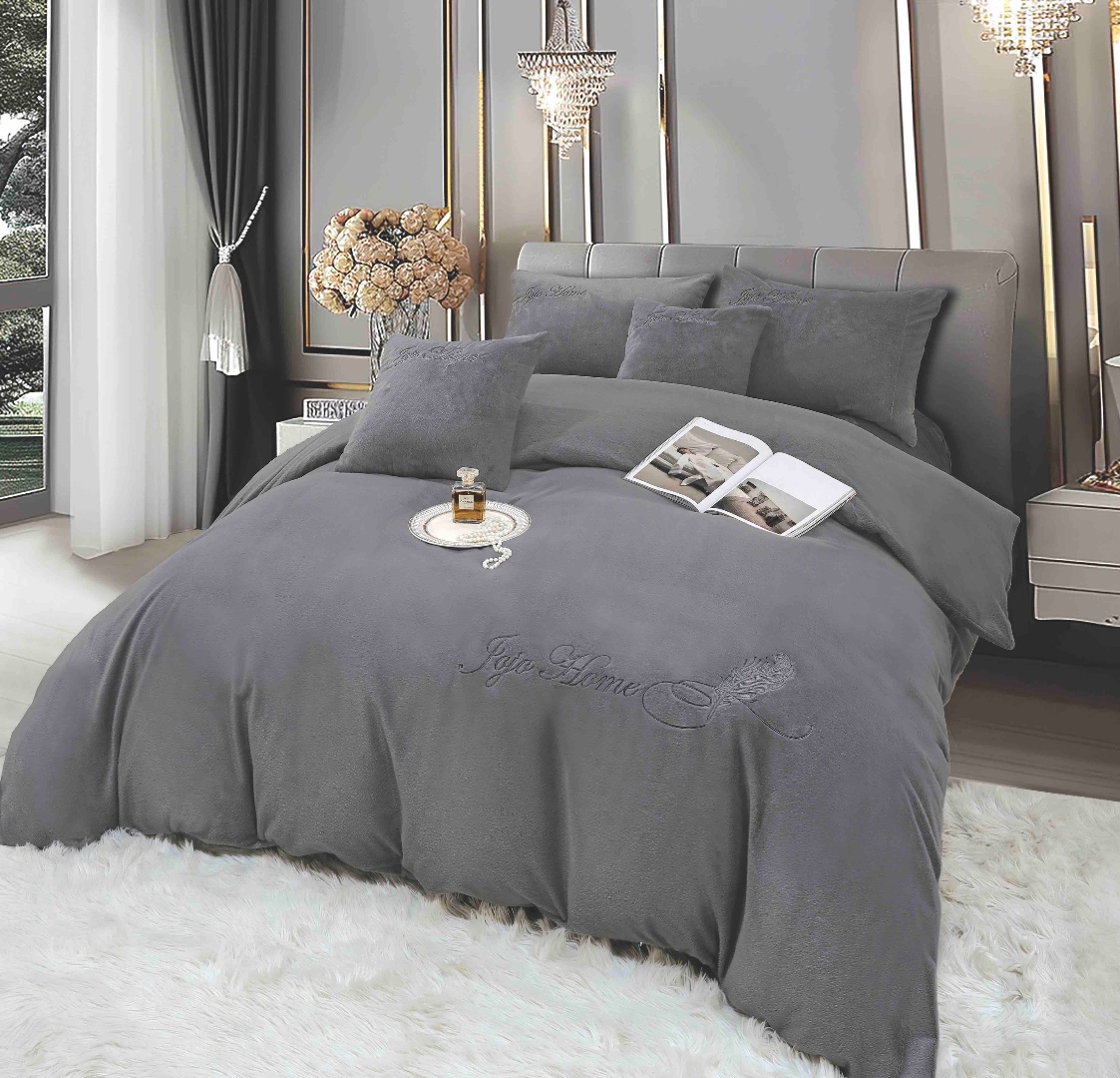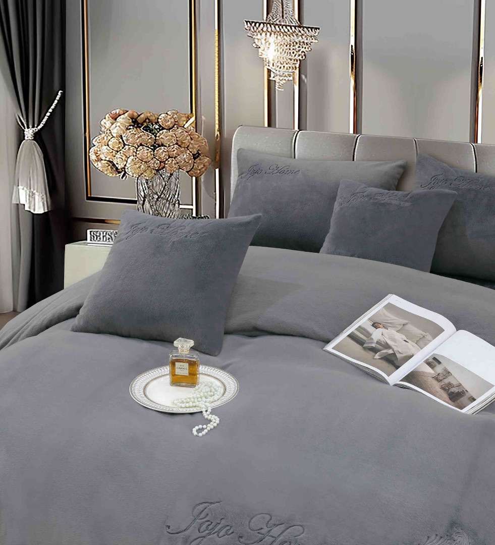 Lenjerie de pat, Soft Touch, Jojo Home, cu Blanita Short Hair, Rabbit, 200x230 cm, 6 piese, Gri inchis