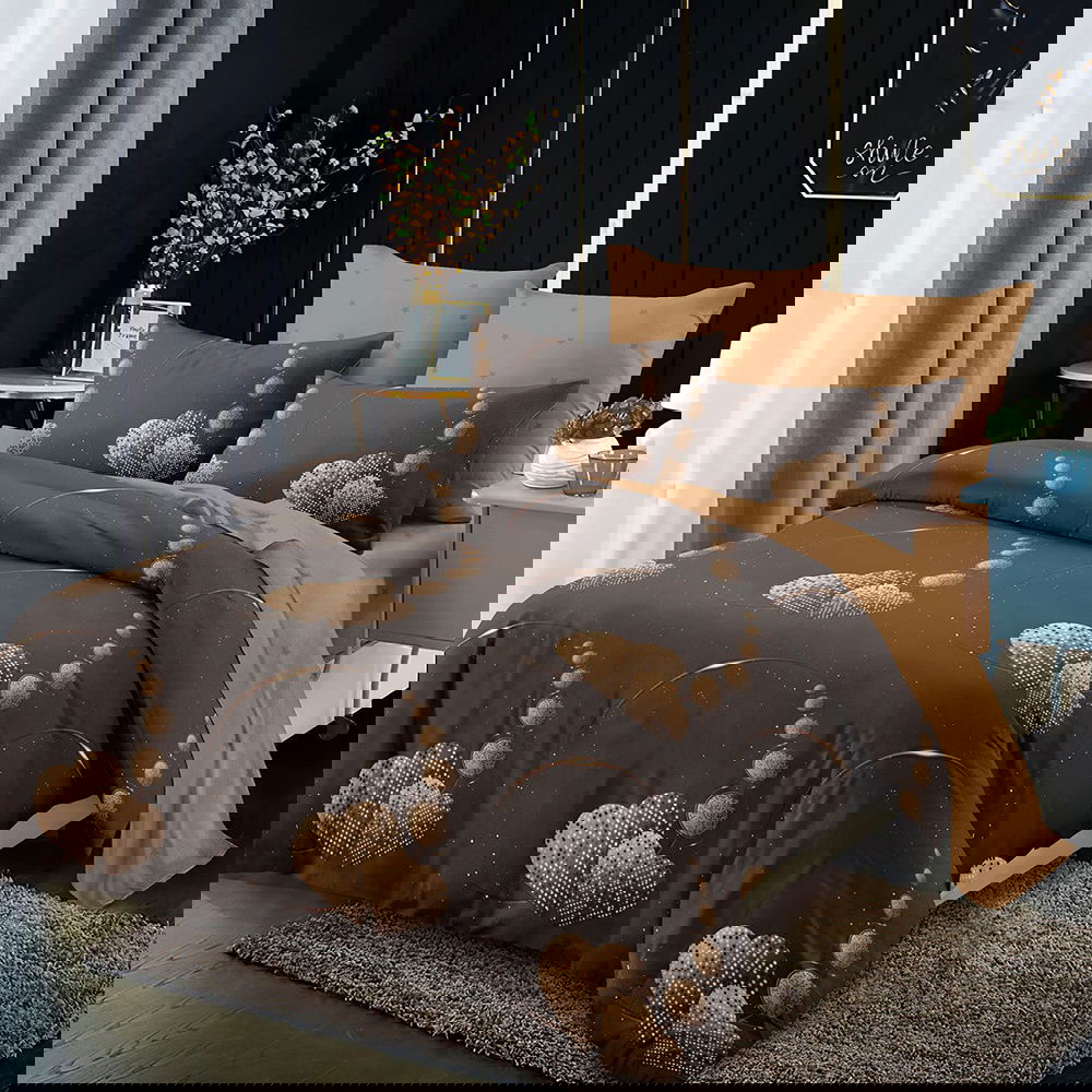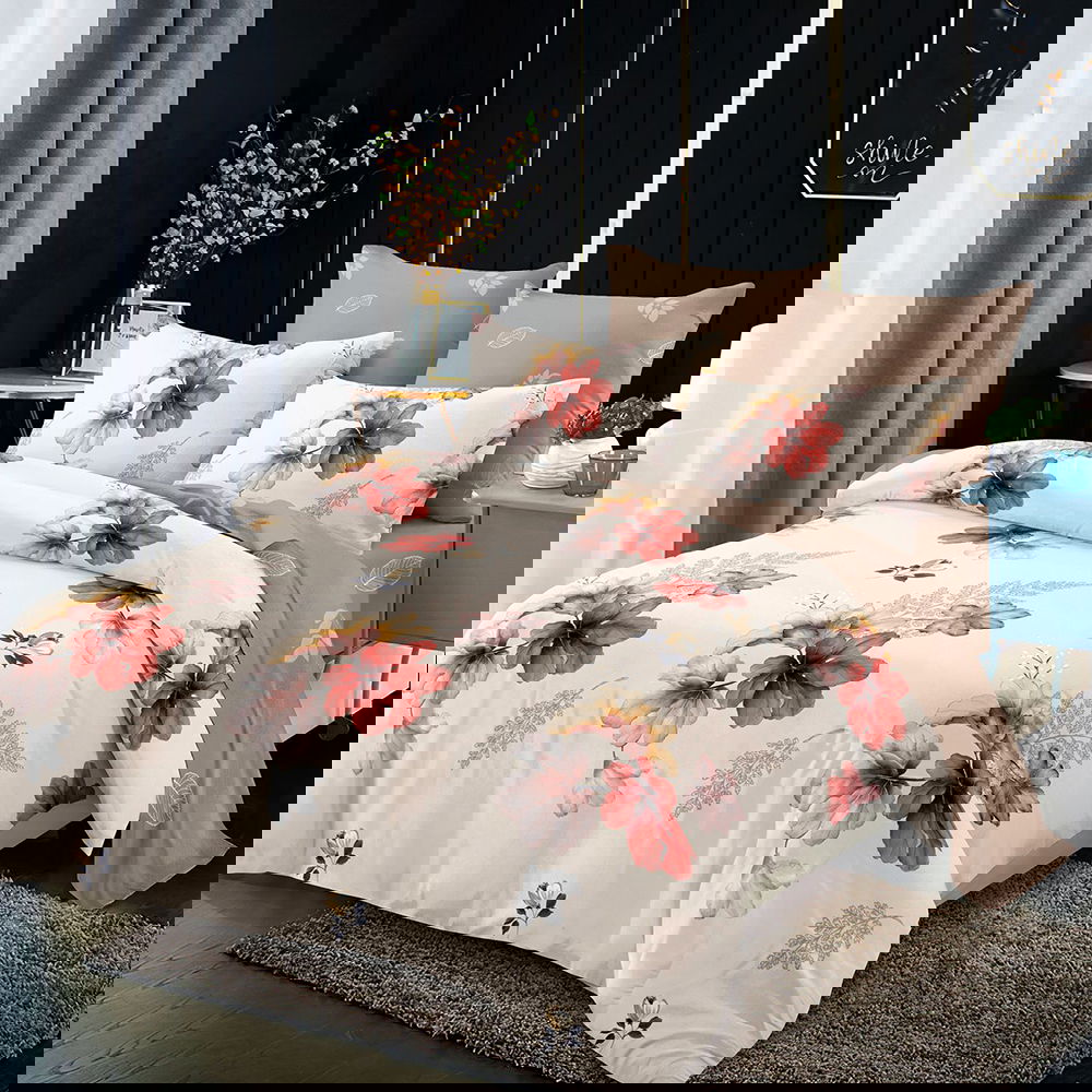 LENJERIE FINET GROS Lenjerie de pat 2 persoane (6 piese) confecționată din finet gros premium și potrivită pentru orice model de pat matrimonial, datorită dimensiunilor generoase. Colecția de lenjerii din finet se remarcă prin calitatea croielilor și a imprimeurilor atrăgătoare. Textura lor este una fină, netedă și confortabilă, oferind o notă de eleganță și bun gust dormitorului!COMPOZIȚIA LENJERIEI: Lenjeria este confecționată din bumbac finet gros premium, de cea mai bună calitate. Cele 6 piese sunt perfecte pentru a îți îmbrăca patul, indiferent de anotimp.CONȚINUTUL LENJERIEI: Lenjerie cu 6 piese: 1 cearceaf de pat (240x250 cm +/- 5cm), 1 cearceaf de pilotă (200x230 cm +/- 5cm), 2 fețe de pernă (55x75 cm +/- 5cm) și 2 fețe de pernă (70x70 +/- 5cm).ÎNTREȚINEREA LENJERIEI: Lenjeria se spală la max. 30°C și se calcă la max. 120°C. Pentru a își menține rezistența și culoarea în timp, NU este recomandată folosirea înălbitorilor chimici. NOTĂ: Pozele afișate sunt cu titlu de prezentare și au scop comercial. Pot exista mici diferențe de nuanță și de încadrare a imprimeului.