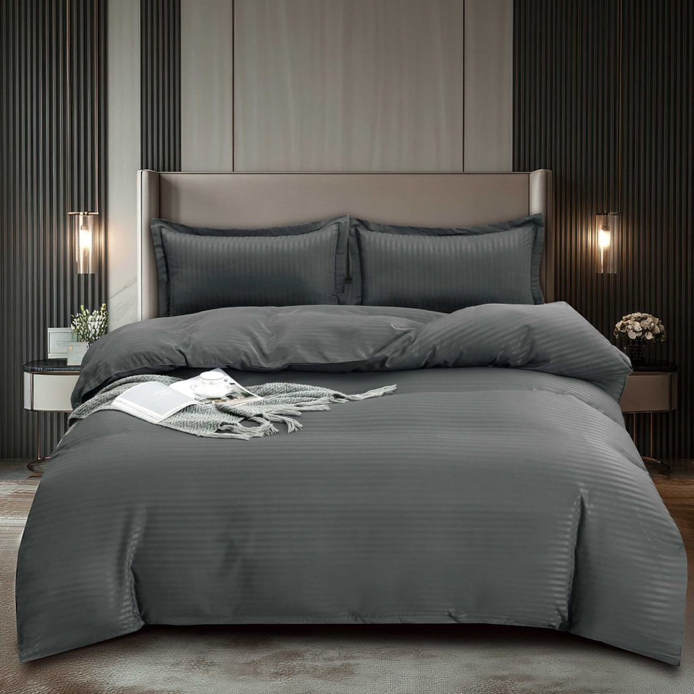 Lenjerie HoReCa, pat dublu, Damasc Finetat Deluxe, 4 piese, Pucioasa, Gri inchis