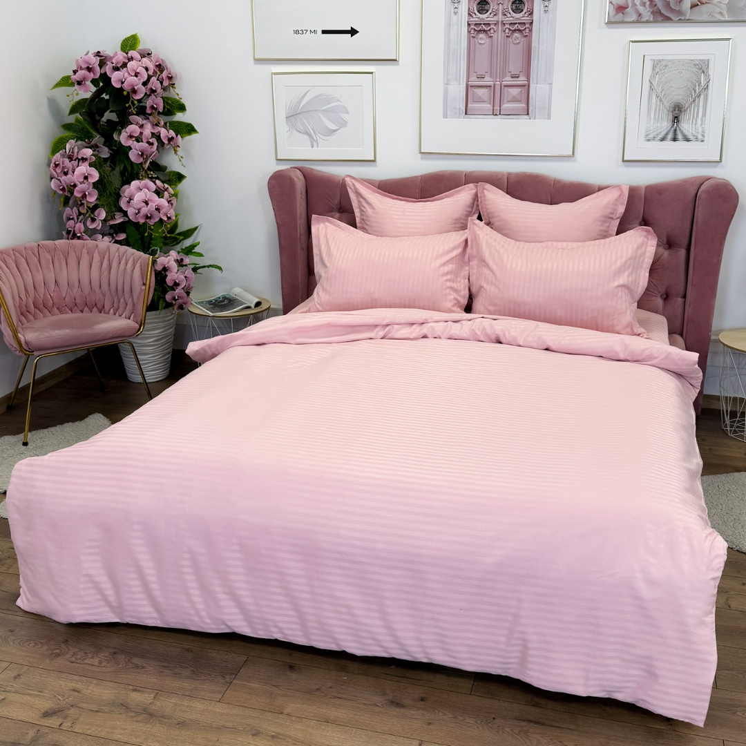 Lenjerie HoReCa, pat dublu, Damasc Finetat Deluxe cu Elastic, 6 piese, Jojo Home, Roz deschis