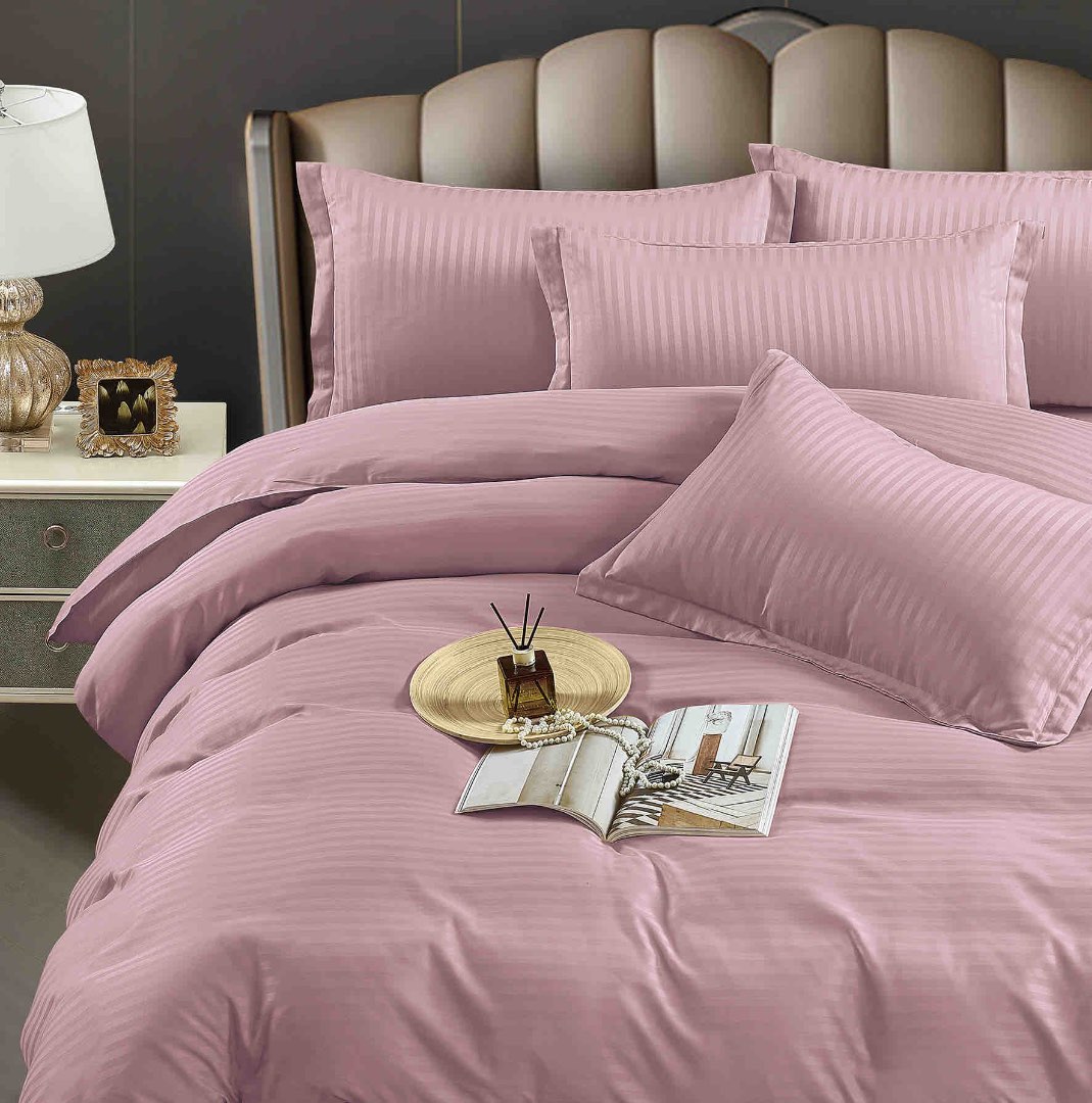 Lenjerie HoReCa, pat dublu, Damasc Finetat Deluxe cu Elastic, 6 piese, Jojo Home, Roz Prafuit