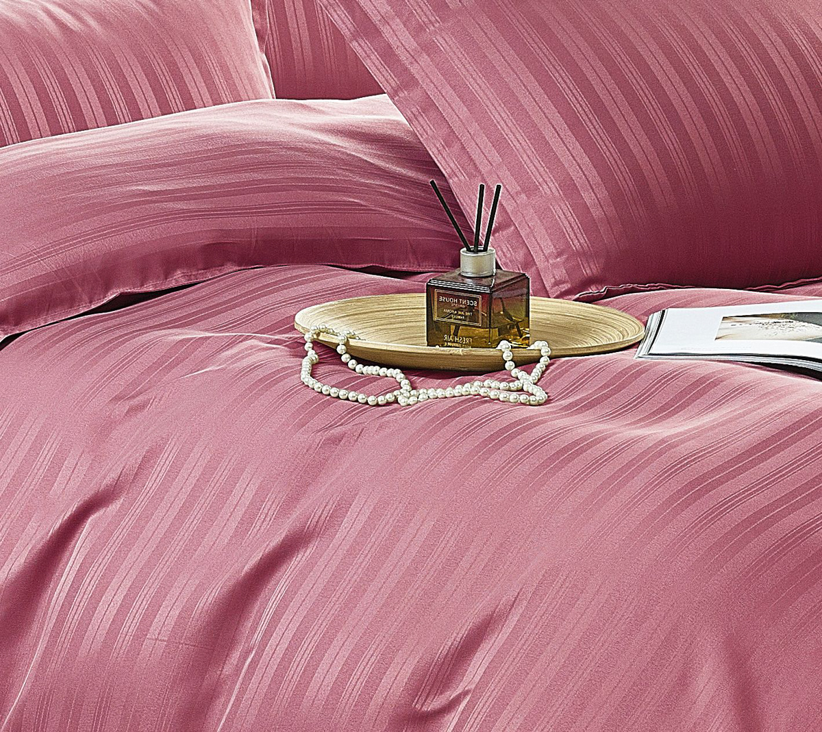 Lenjerie HoReCa, pat dublu, Damasc Finetat Satinat, 6 piese, Jojo Home, Roz Prafuit