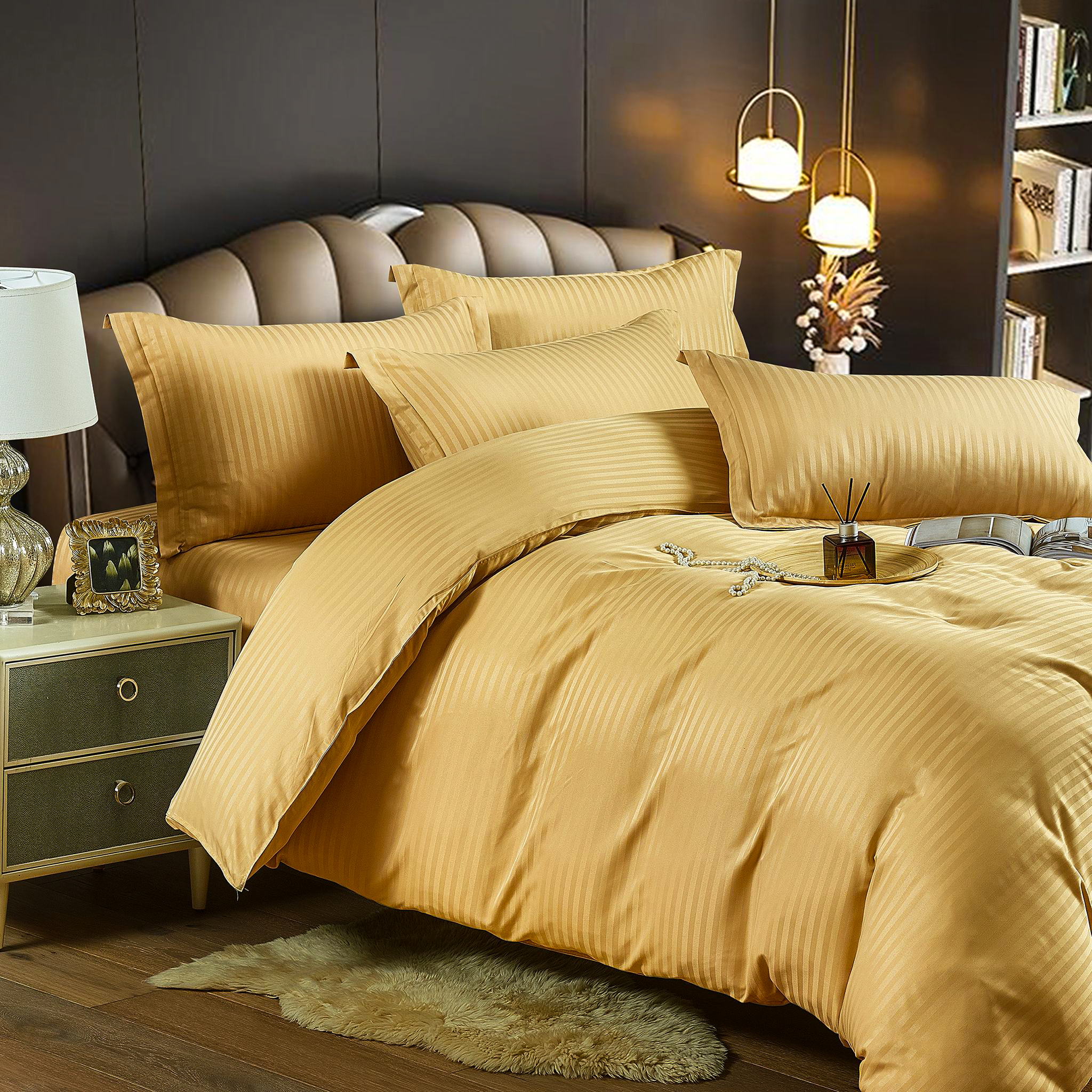 Lenjerie HoReCa, pat single, Damasc Finetat Deluxe, 4 piese, Jojo Home, Bej