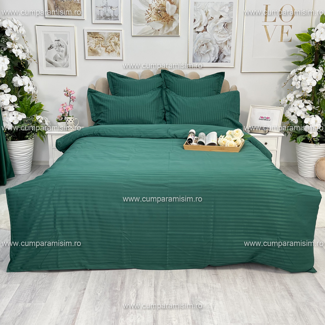 Lenjerie HoReCa, pat single, Damasc Finetat Deluxe, 4 piese, Jojo Home, Verde Smarald
