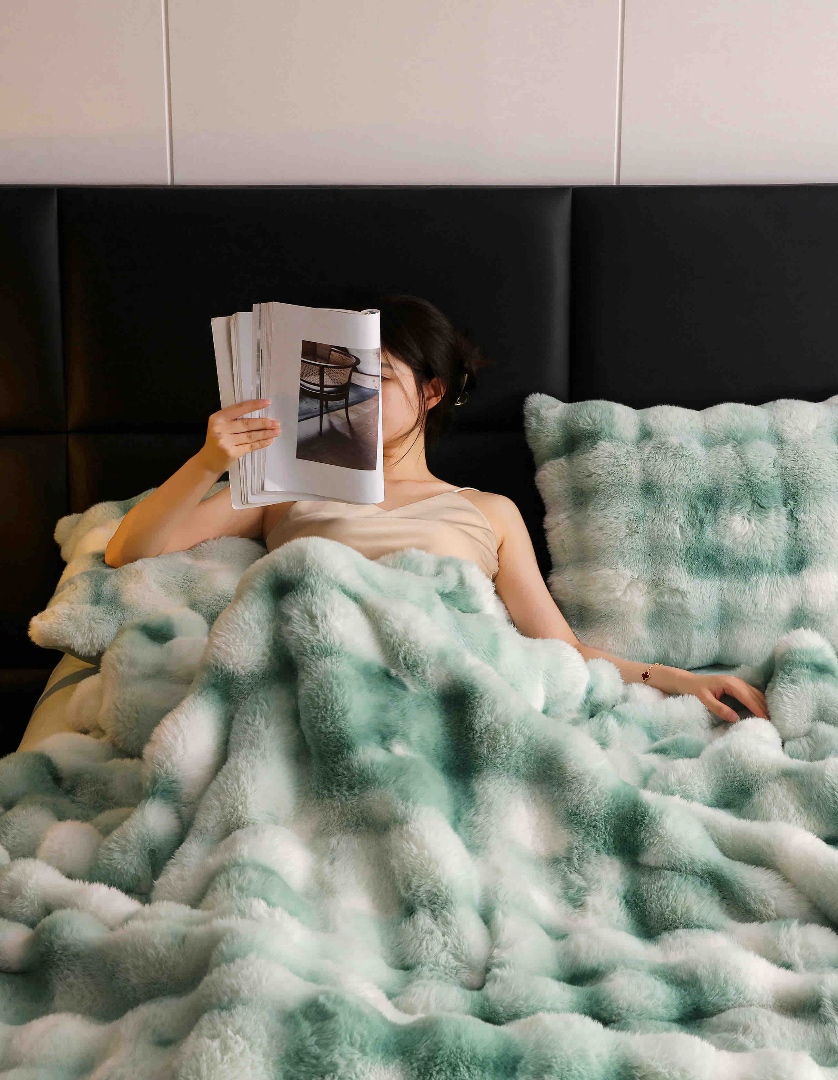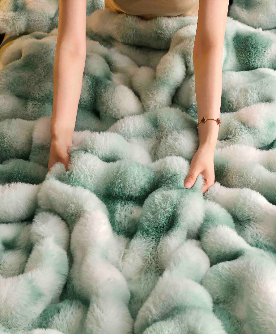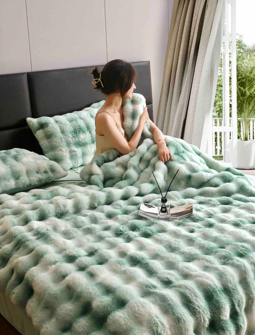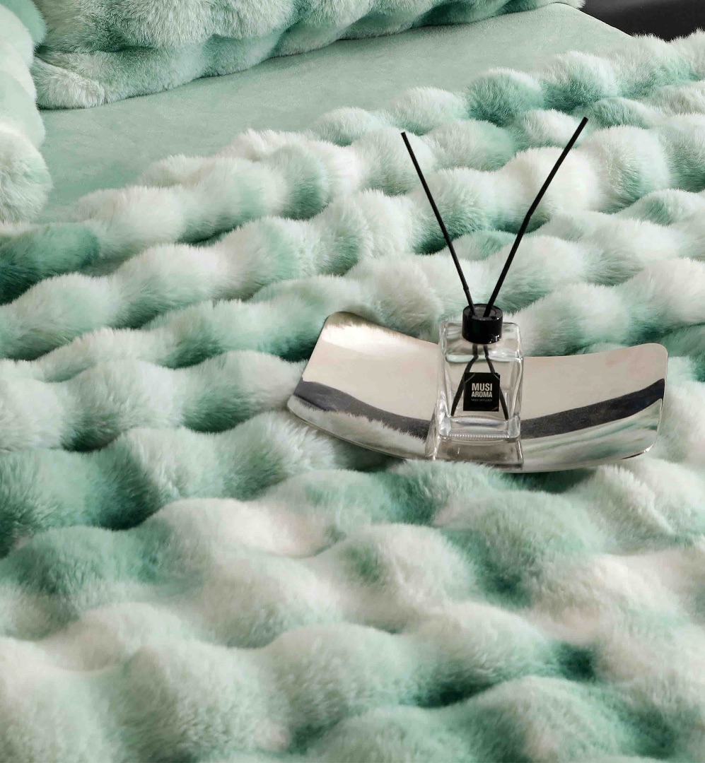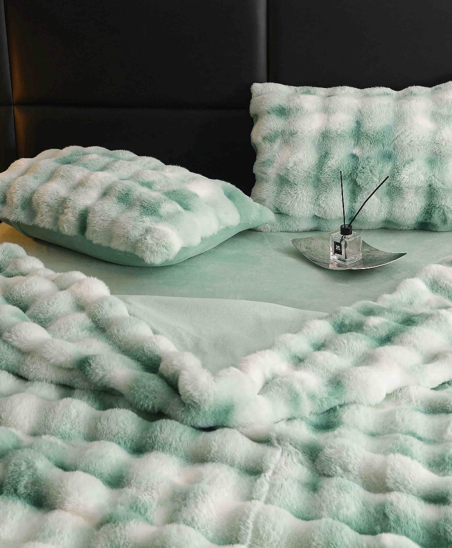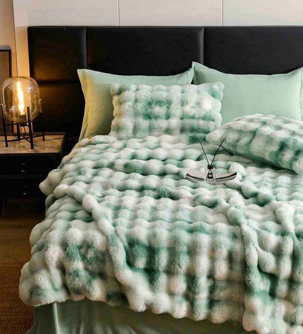 Lenjerie Luxury Pat Dublu, Jojo Home, ExtraPufoasa, din Blanita Artificiala tip Iepure, 6 piese, Menta degrade
