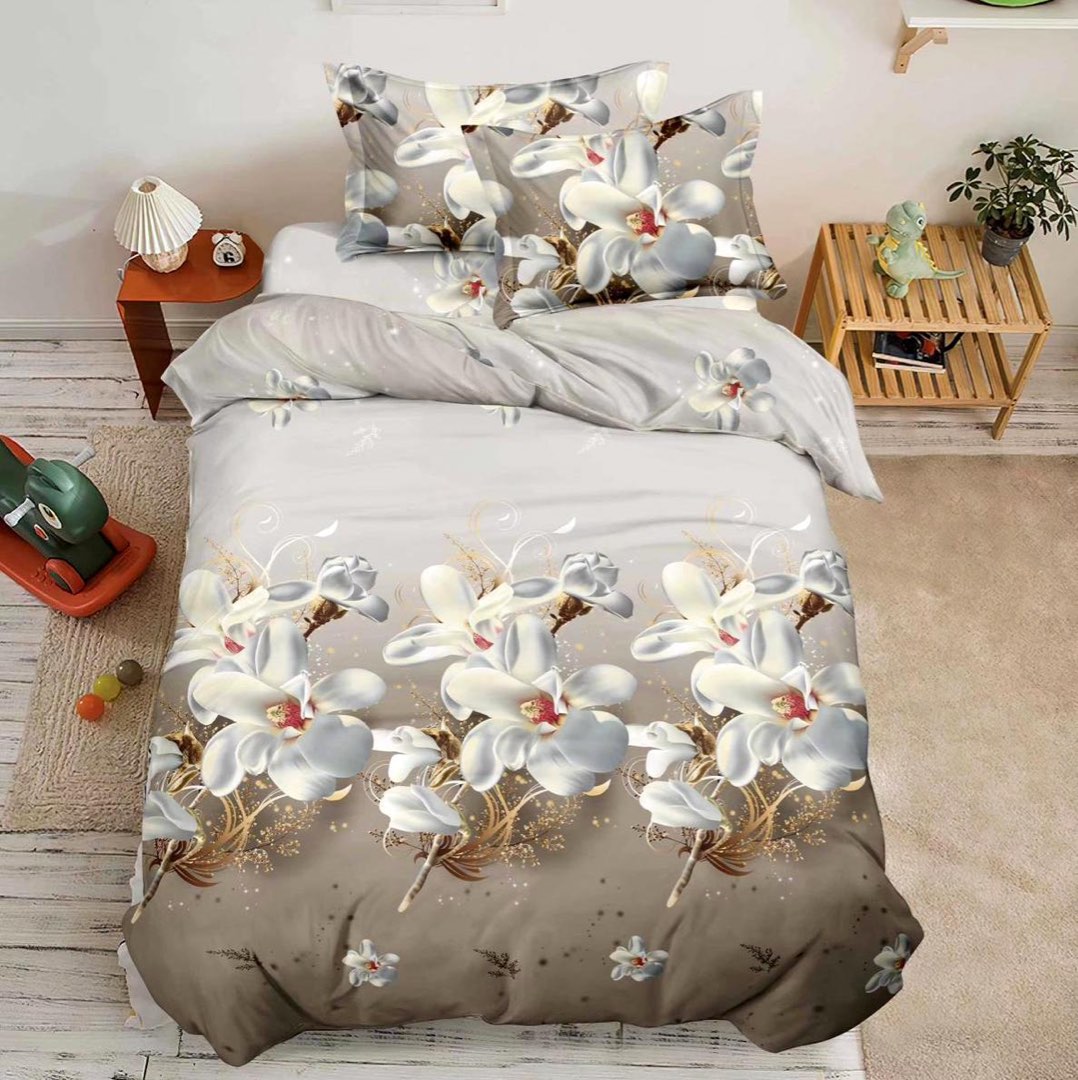 (OFERTA 3 la 199 Lei) Lenjerie pat 1 PERSOANA, 3 piese, IMPRIMEU 3D Multiplicat, Microfibra, Bej, flori