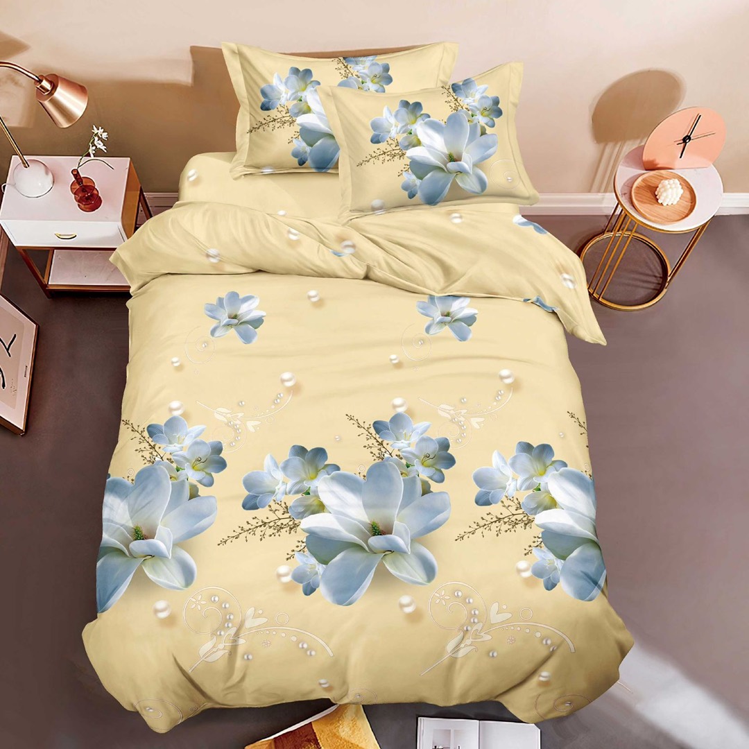 (OFERTA 3 la 199 Lei) Lenjerie pat 1 PERSOANA, 3 piese, IMPRIMEU 3D Multiplicat, Microfibra, Bej, flori