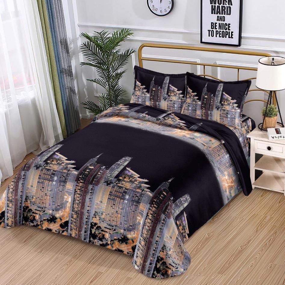 (OFERTA 3 la 199 Lei) Lenjerie pat 1 PERSOANA, 3 piese, IMPRIMEU 3D Multiplicat, Microfibra, Negru, oras