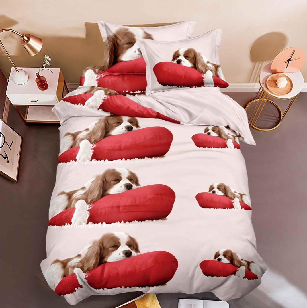 (OFERTA 3 la 199 Lei) Lenjerie pat 1 PERSOANA, 3 piese, IMPRIMEU 3D Multiplicat, Microfibra, Rosu, catei