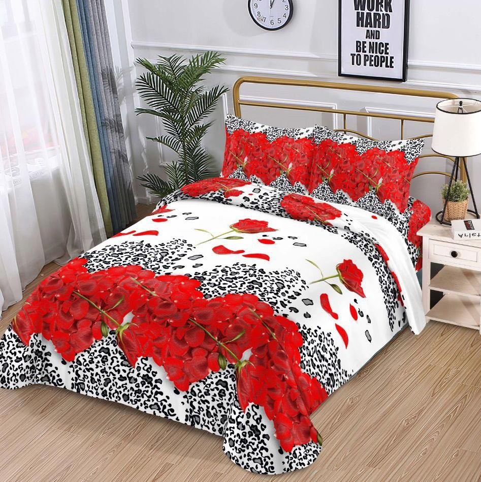 (OFERTA 3 la 199 Lei) Lenjerie pat 1 PERSOANA, 3 piese, IMPRIMEU 3D Multiplicat, Microfibra, Rosu, trandafiri, inimioare