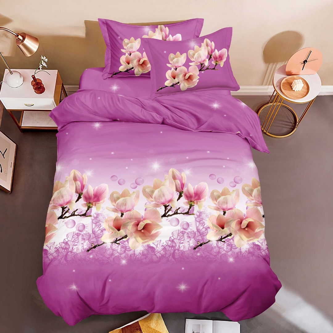 (OFERTA 3 la 199 Lei) Lenjerie pat 1 PERSOANA, 3 piese, IMPRIMEU 3D Multiplicat, Microfibra, Roz, magnolii