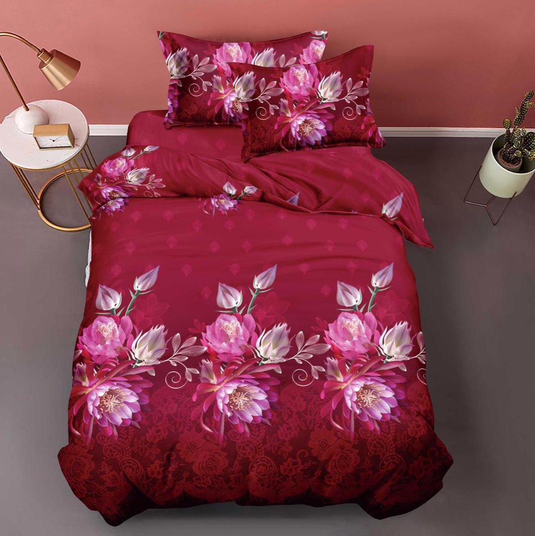 (OFERTA 3 la 199 Lei) Lenjerie pat 1 PERSOANA, 3 piese, IMPRIMEU 3D Multiplicat, Microfibra, Visiniu, flori
