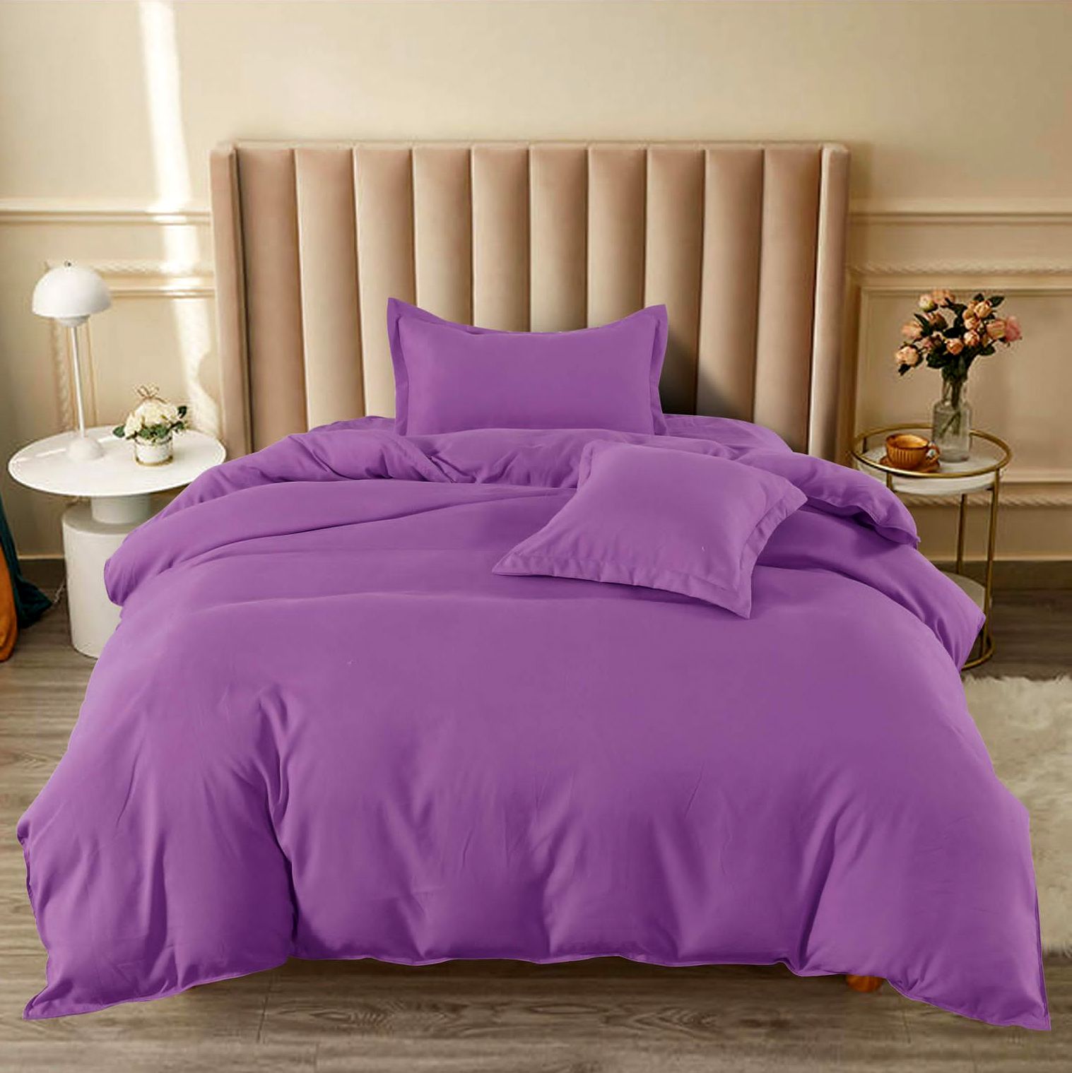 Lenjerie pat 1 PERSOANA, BUMBAC FINET, 4 piese, cu ELASTIC, Mov