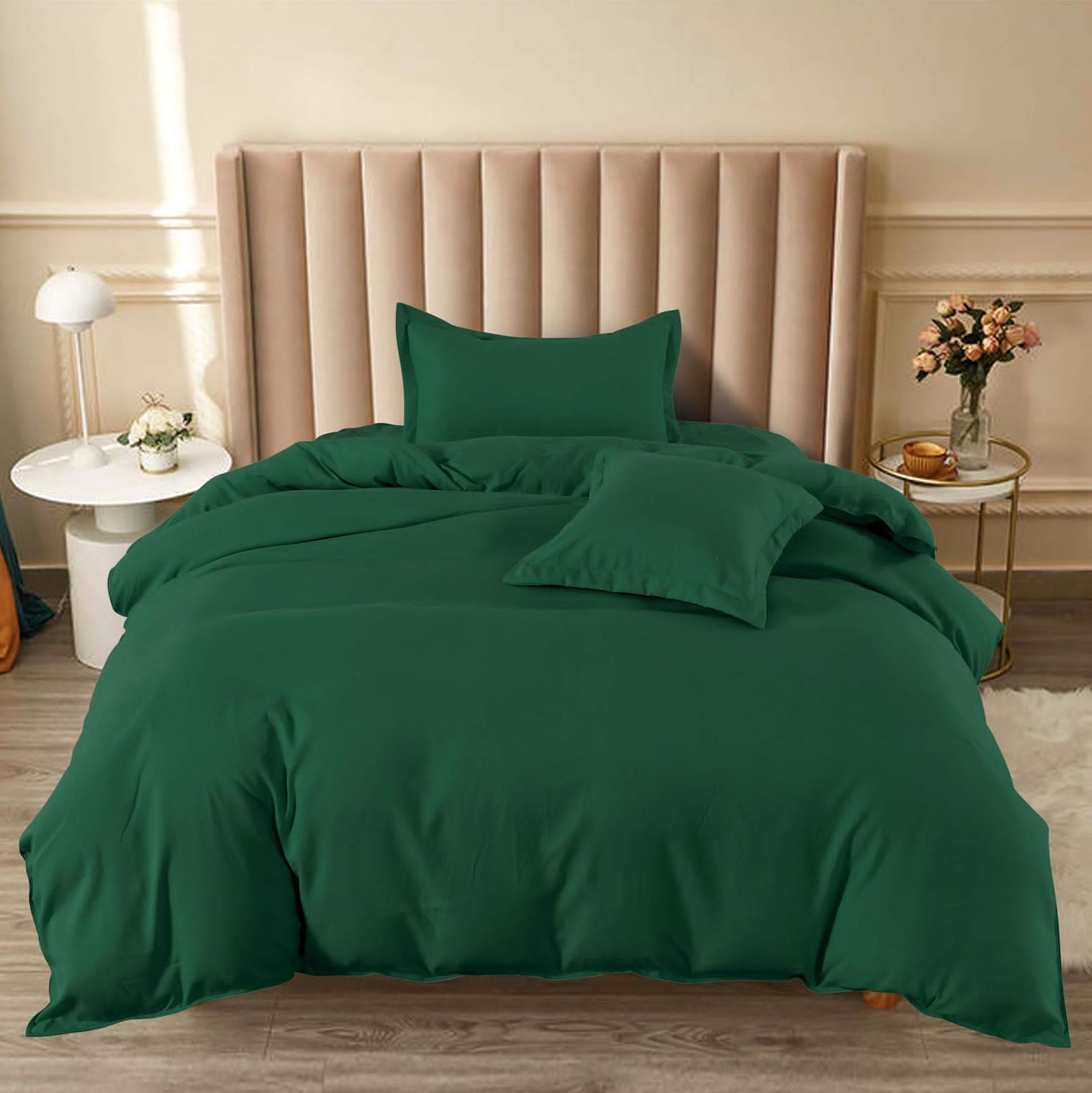 Lenjerie pat 1 PERSOANA, BUMBAC FINET, 4 piese, cu ELASTIC, Verde inchis