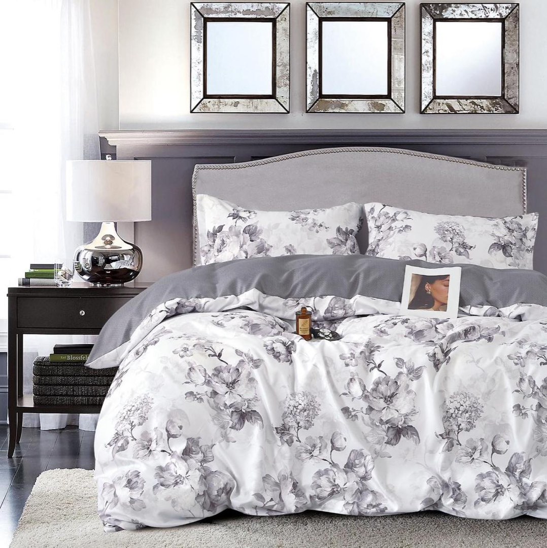 Lenjerie pat 1 PERSOANA, FINET, 4 piese, Gri, flori