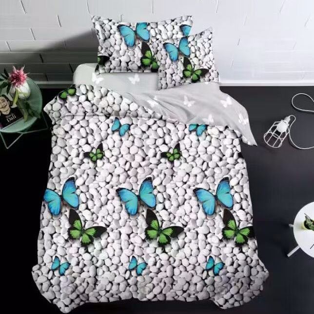 Lenjerie pat 1 PERSOANA, FINET, 4 piese, Gri, pietre, fluturi