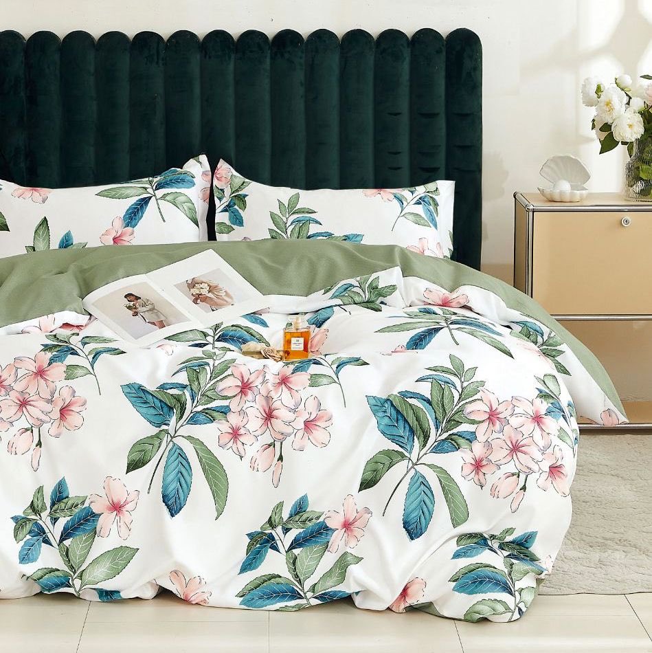Lenjerie pat 1 PERSOANA, FINET, 4 piese, Verde, frunze