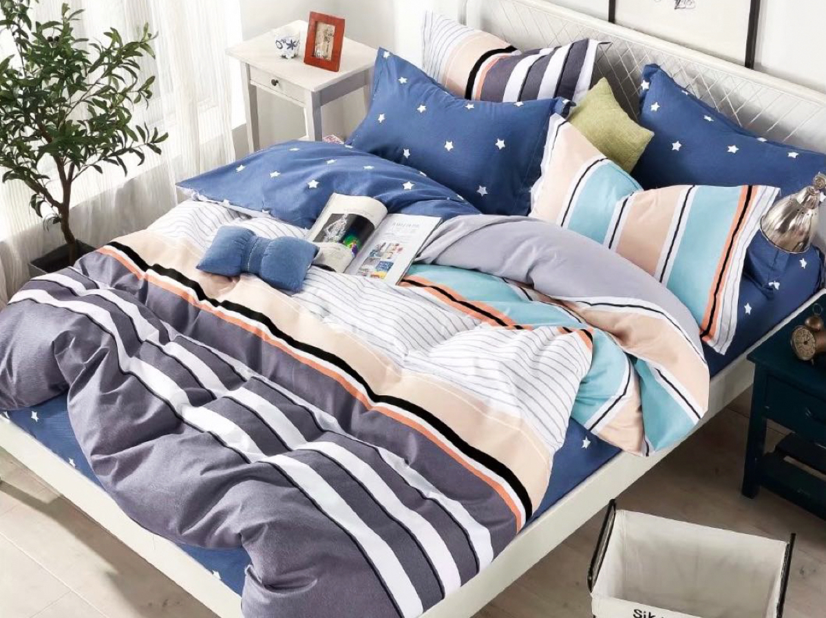 Lenjerie pat 1 PERSOANA, FINET, 4 piese, Jojo Home, Bleu-Gri, dungi, stelute