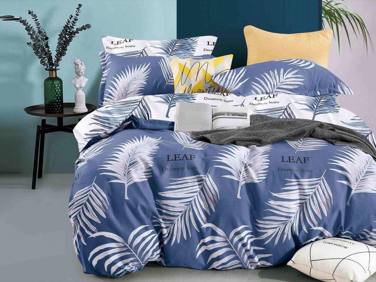 Lenjerie pat 1 PERSOANA, FINET, 4 piese, Jojo Home, Bleumarin-Alb, frunze