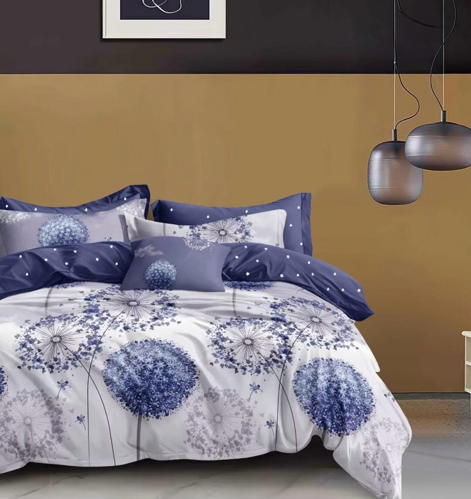 Lenjerie pat dublu (140x200cm, 160x200cm, 180x200cm), FINET, 6 piese, Alb, Albastru, flori