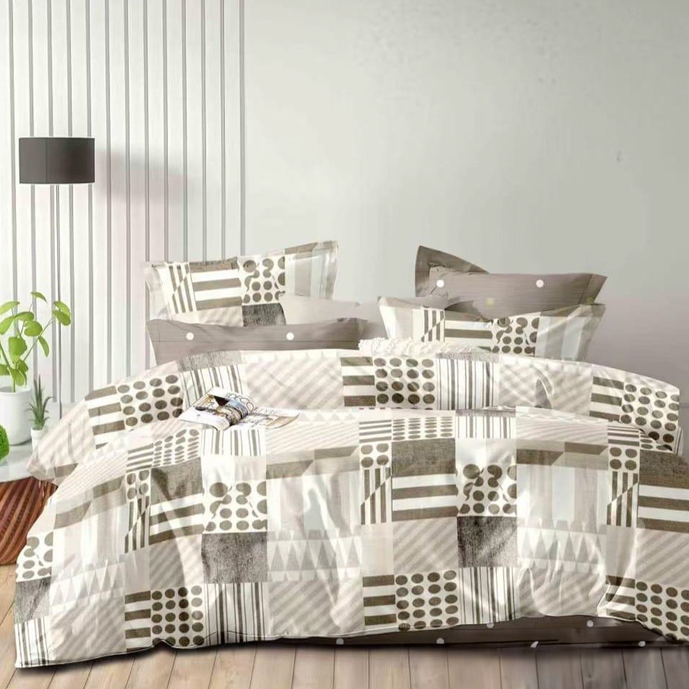 Lenjerie pat dublu (140x200cm, 160x200cm, 180x200cm), FINET, 6 piese, Bej, forme geometrice