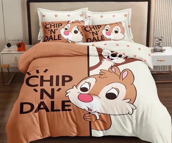 Lenjerie pat dublu (140x200cm, 160x200cm, 180x200cm), FINET, 6 piese, IDENTICA CU POZA,, Alb, Bej, Chip n Dale