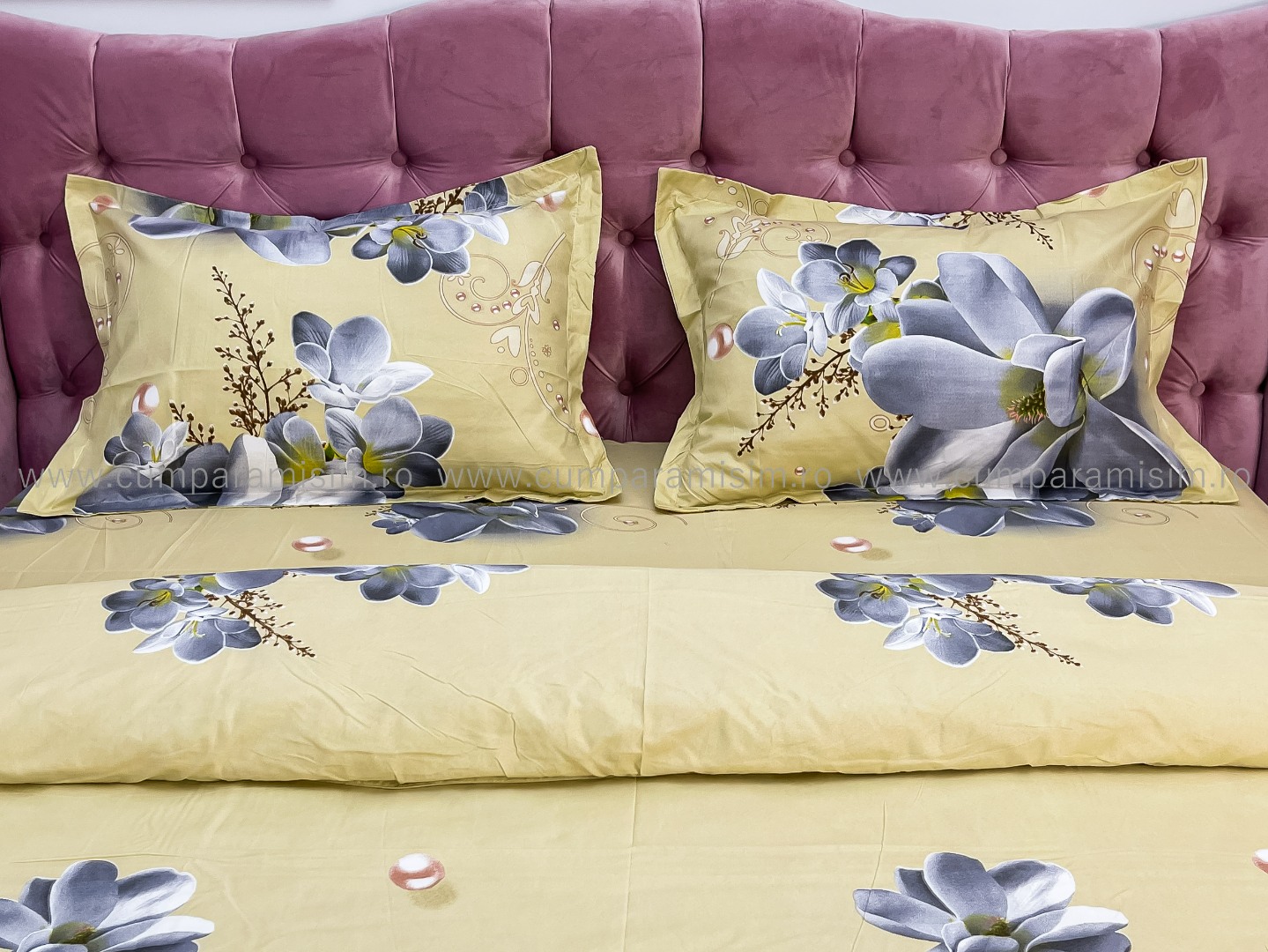 (OFERTA 3 la 199 Lei) Lenjerie pat dublu, 4 piese, IMPRIMEU 3D Multiplicat, Microfibra, Crem, flori