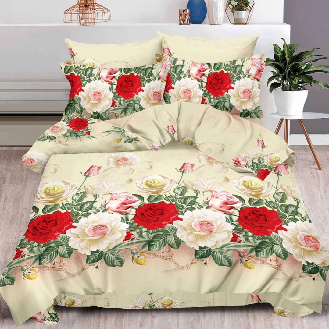 (OFERTA 3 la 199 Lei) Lenjerie pat dublu, 4 piese, IMPRIMEU 3D Multiplicat Multiplicat, Microfibra, Bej, flori
