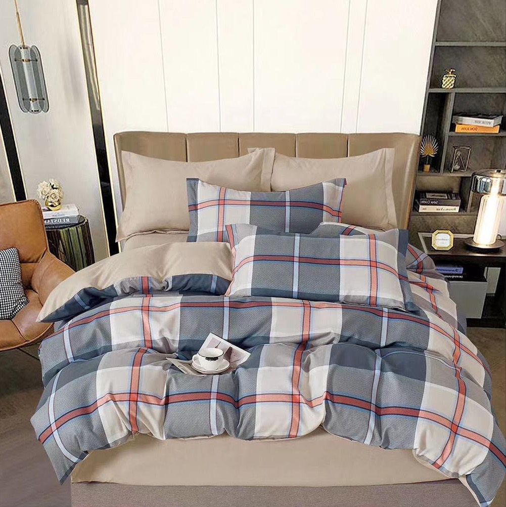 Lenjerie pat dublu, Finet, 6 piese, Bej-Gri, carouri