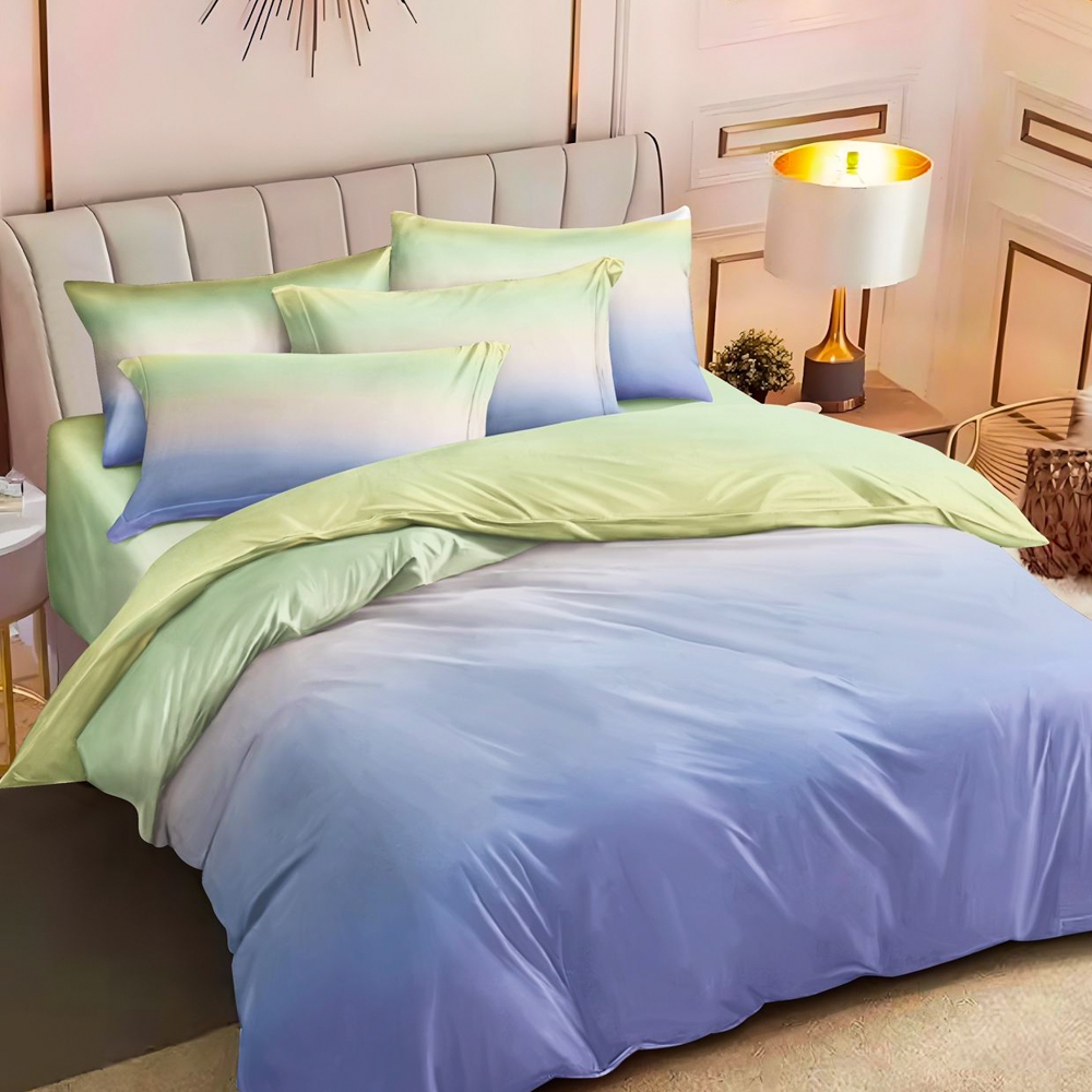 Lenjerie pat dublu, Finet, 6 piese, Bleu, degrade