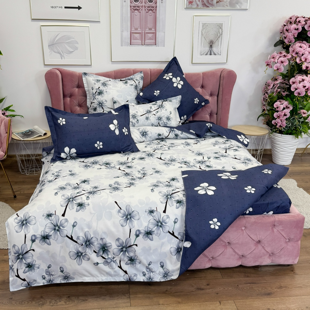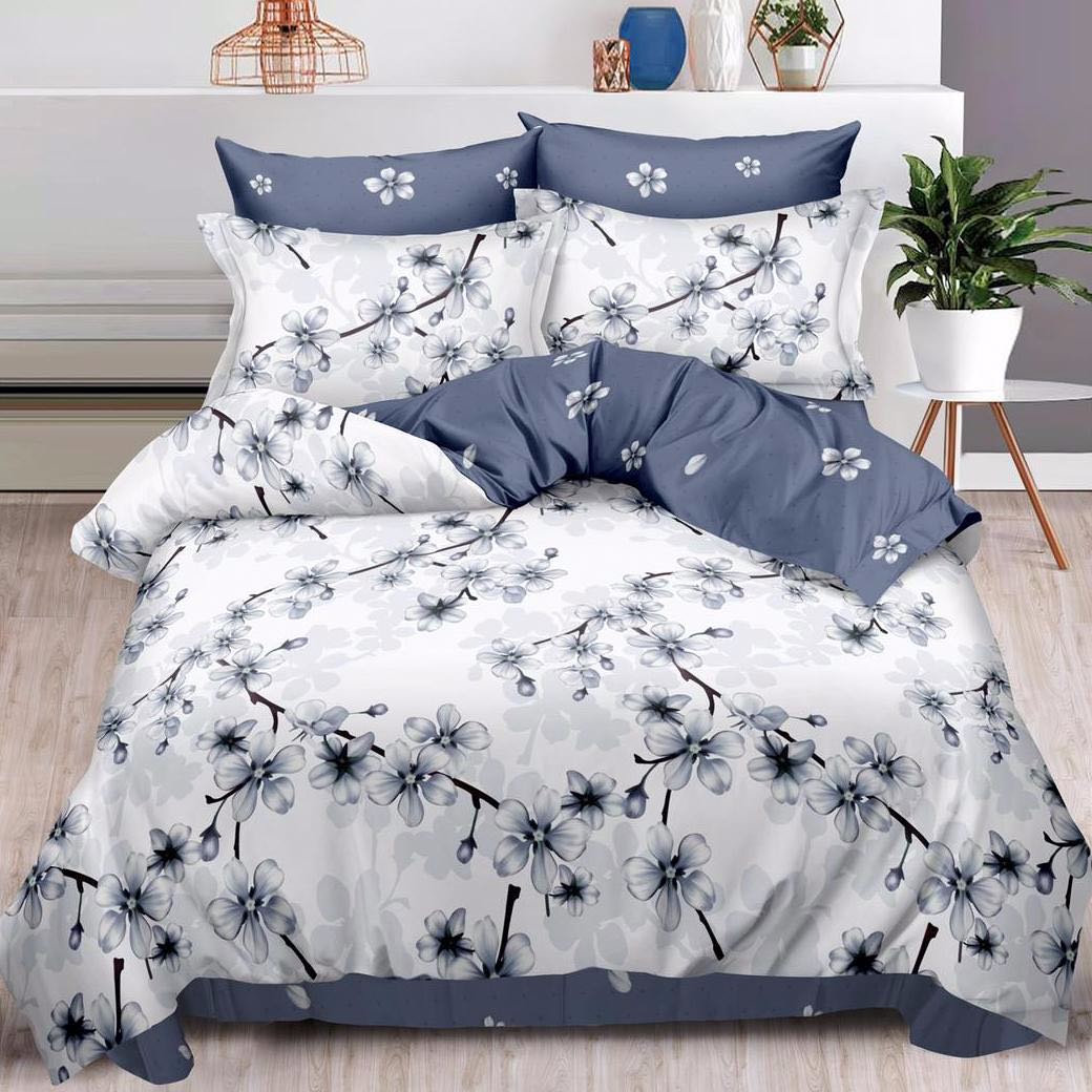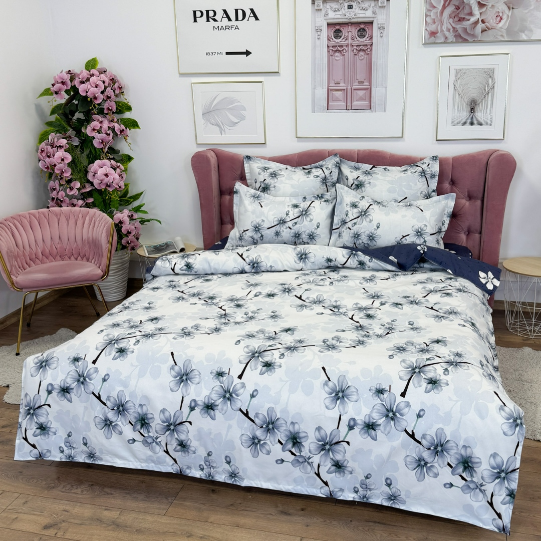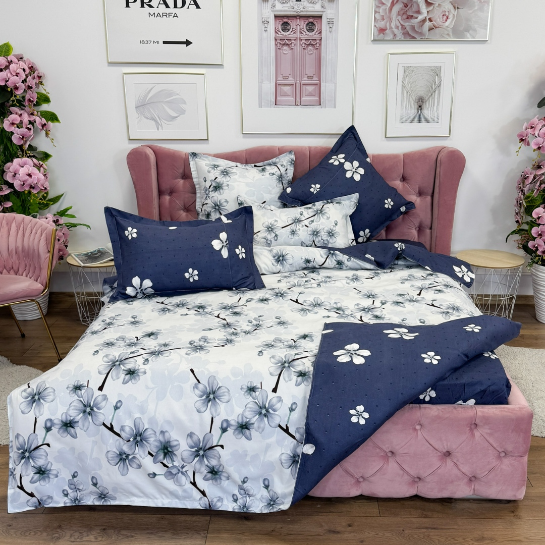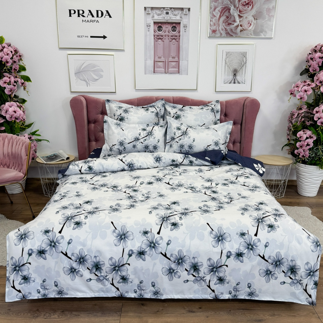 Lenjerie pat dublu cu ELASTIC, Finet, 6 piese, Gri, flori