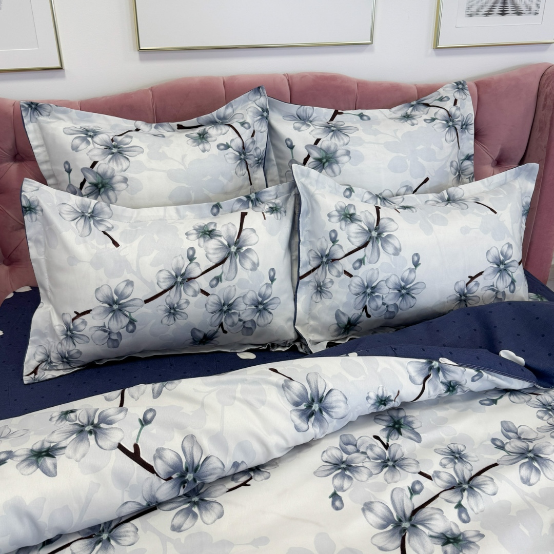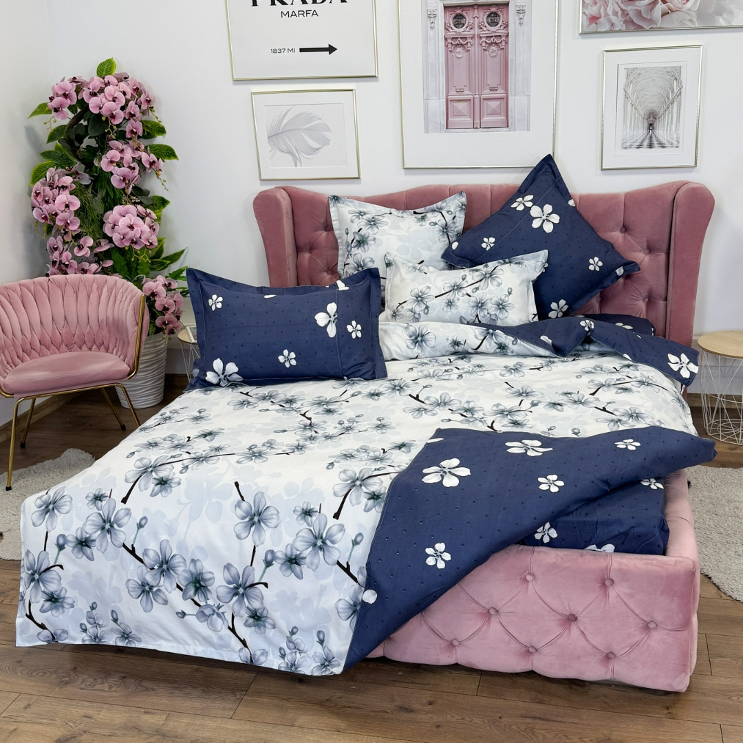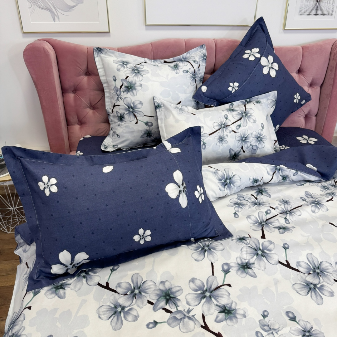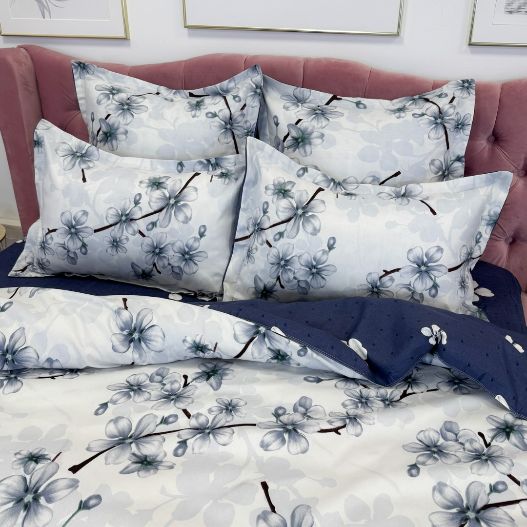 Lenjerie pat dublu cu ELASTIC, Finet, 6 piese, Gri, flori