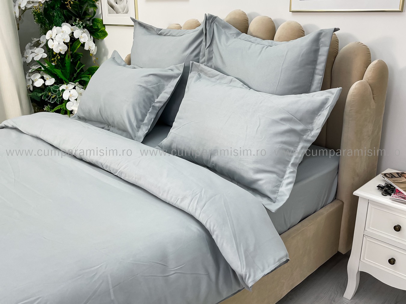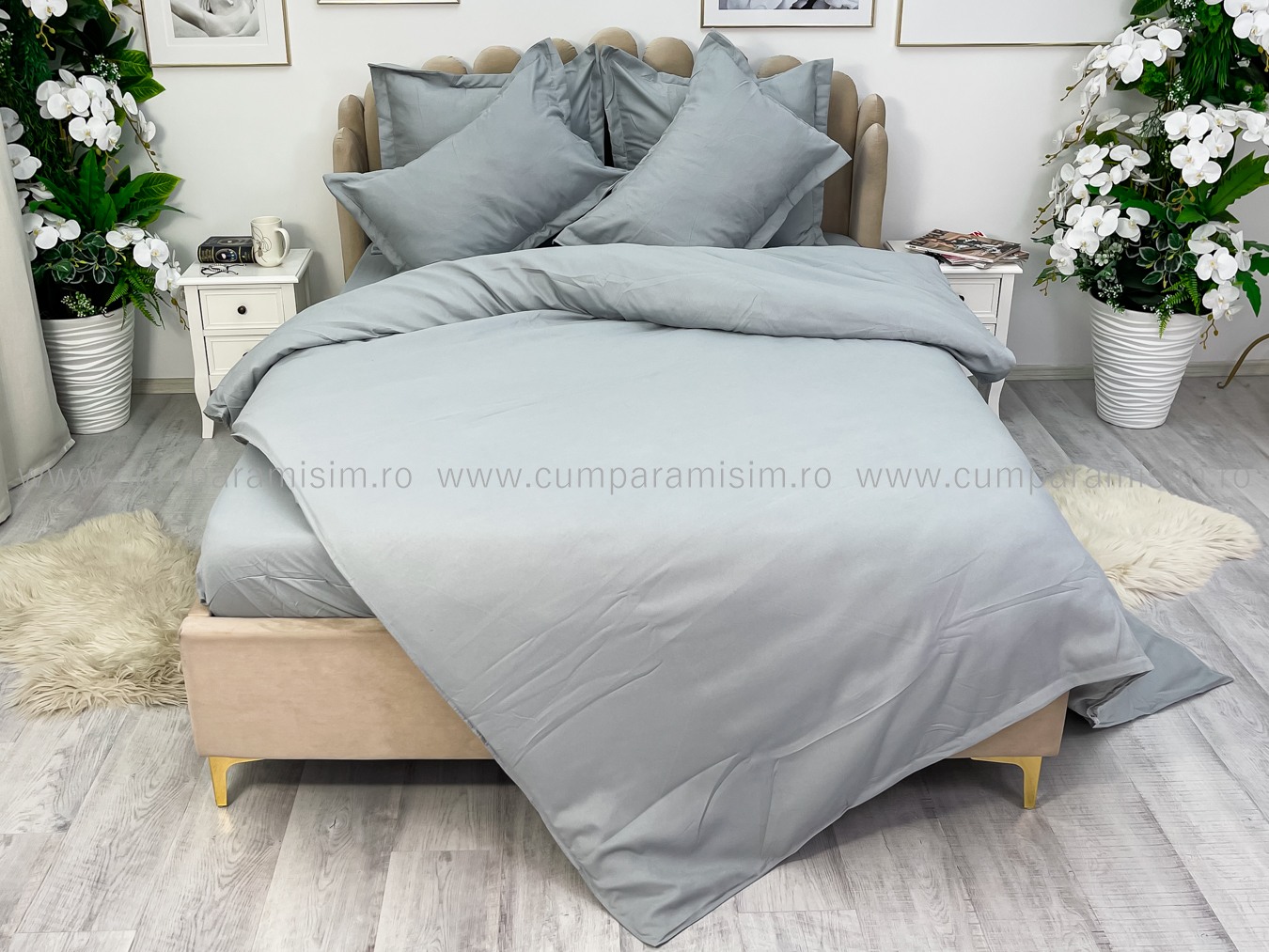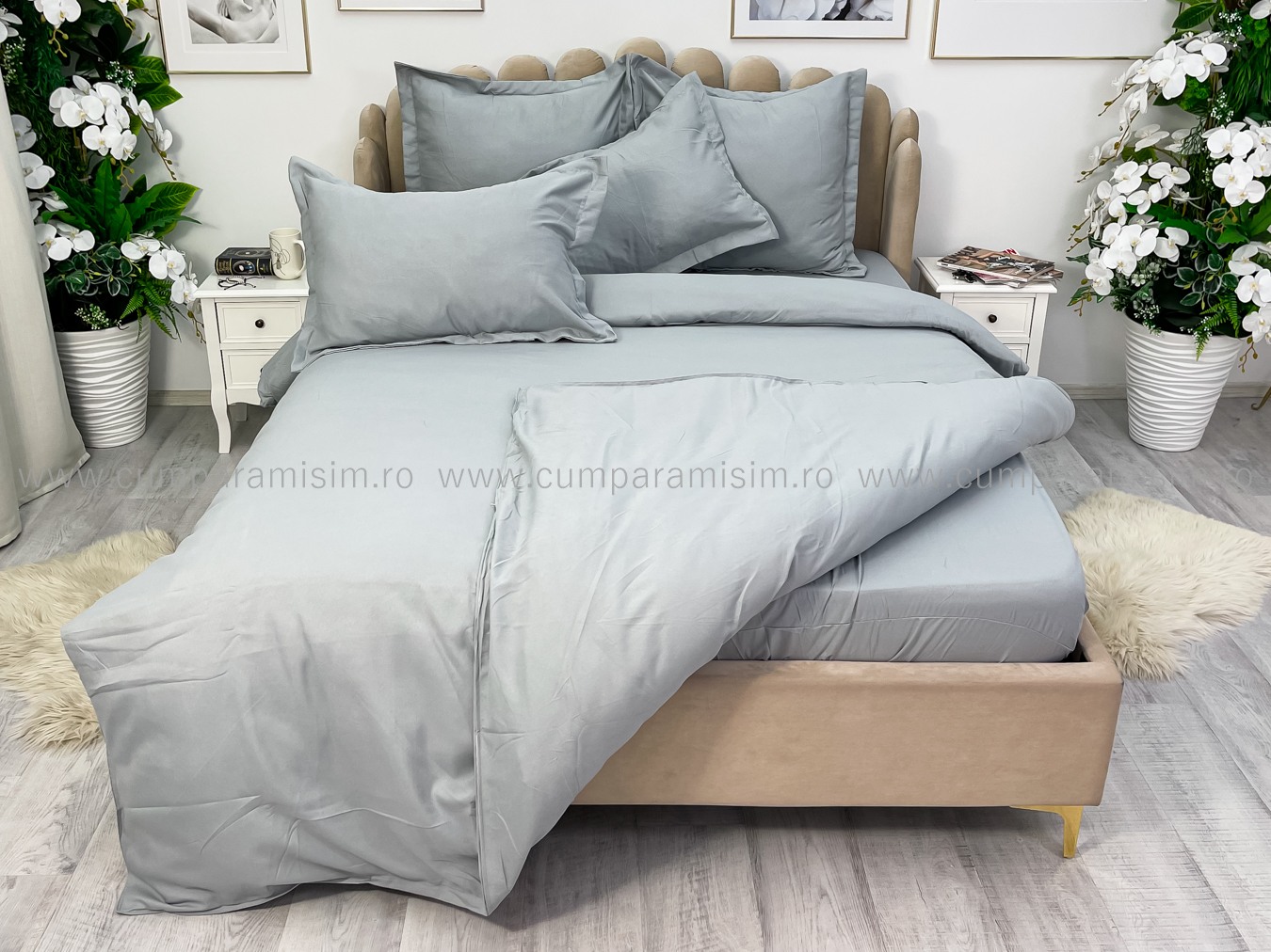Lenjerie pat dublu cu ELASTIC, Finet, 6 piese, Gri