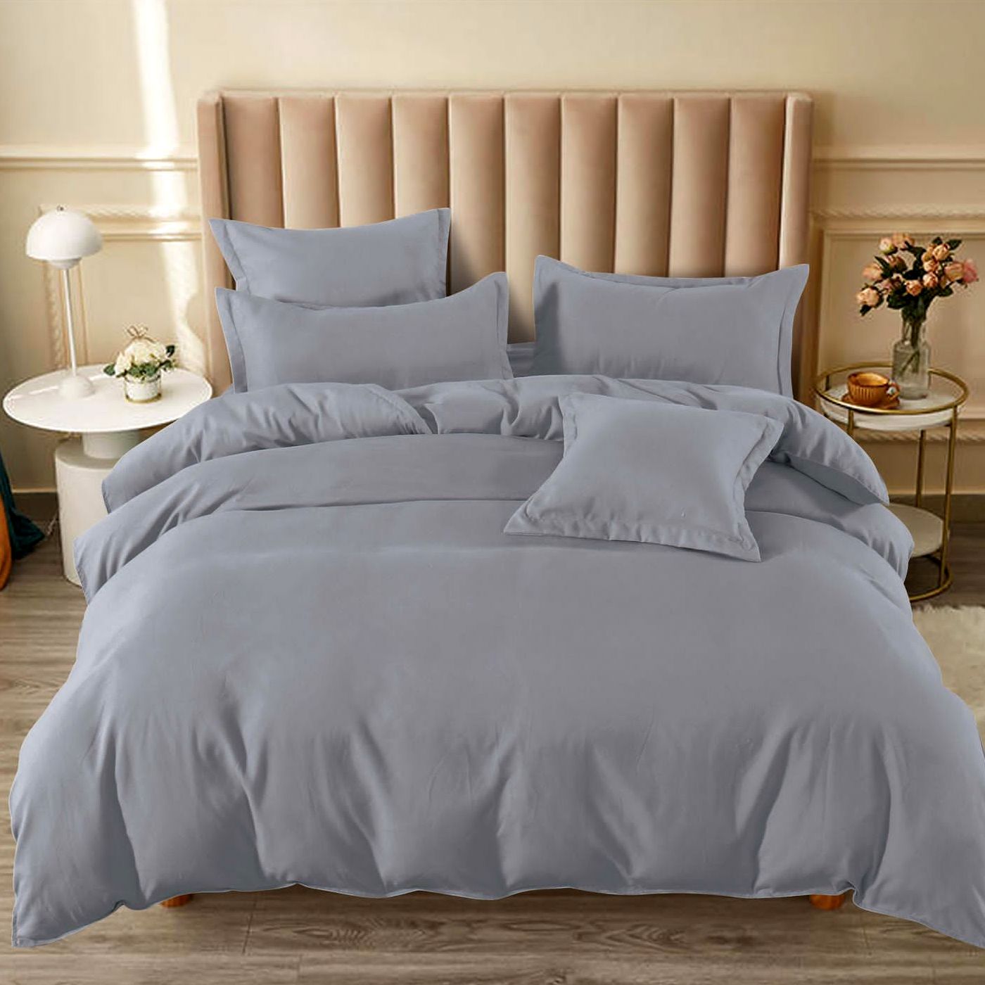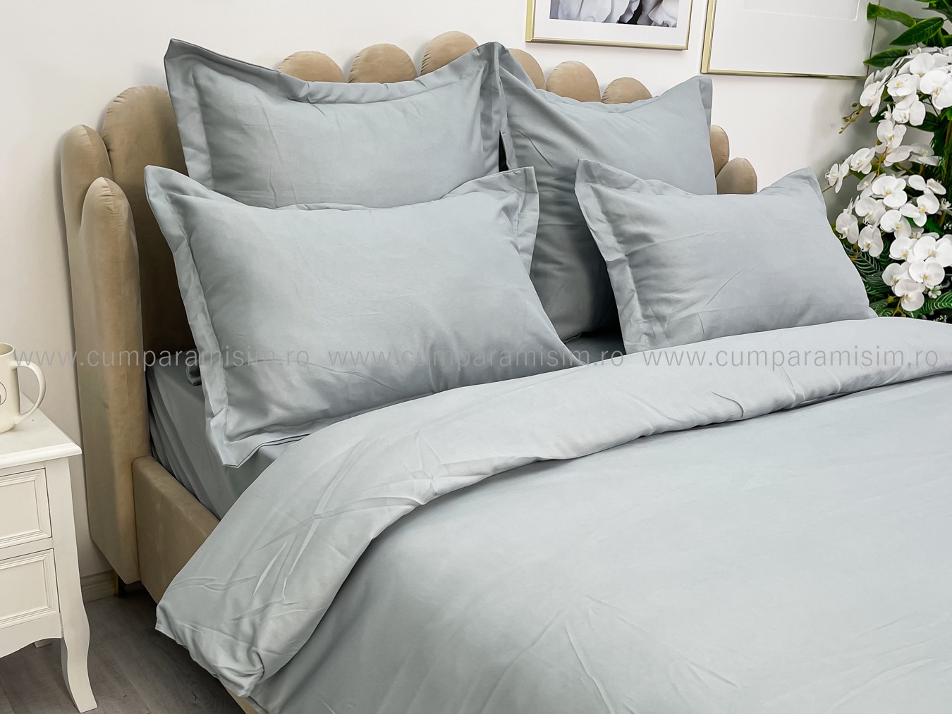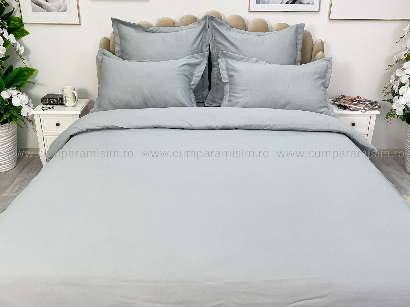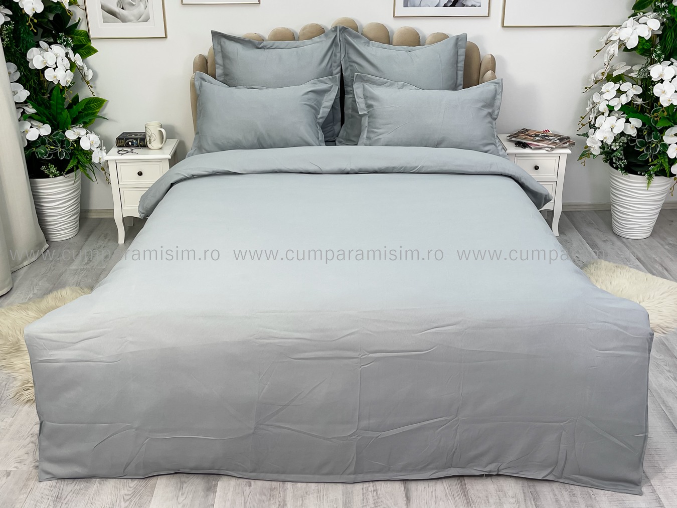 Lenjerie pat dublu cu ELASTIC, Finet, 6 piese, Gri