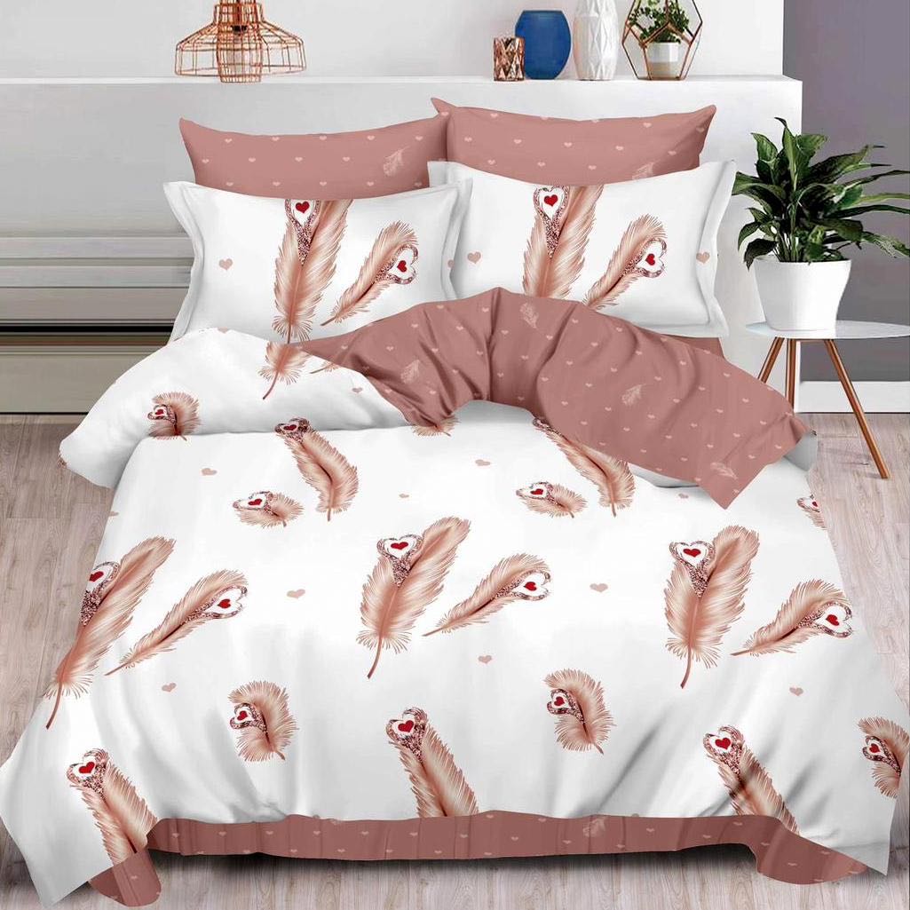 Lenjerie pat dublu cu ELASTIC, Finet, 6 piese, Maro, pene