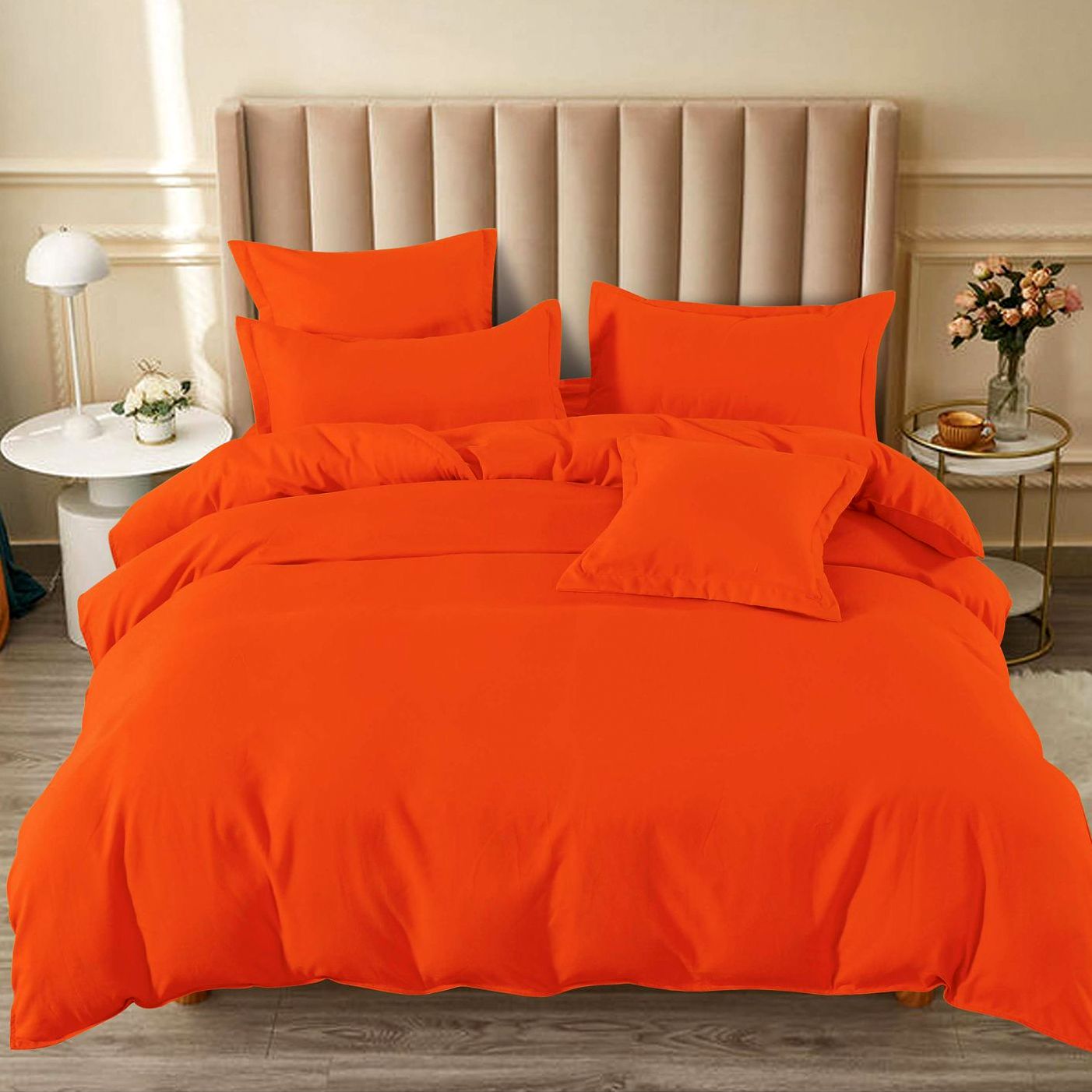 Lenjerie pat dublu cu ELASTIC, Finet, 6 piese, Portocaliu