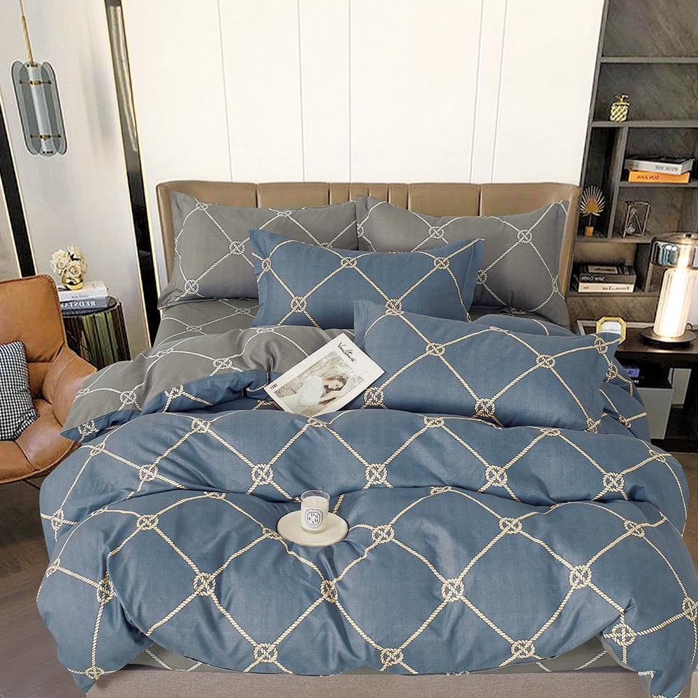 Lenjerie pat dublu, Finet, 6 piese, Gri albastrui, romburi