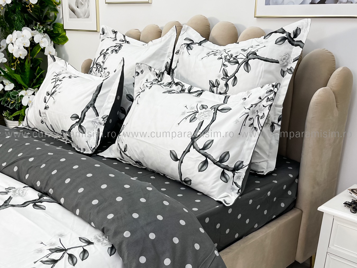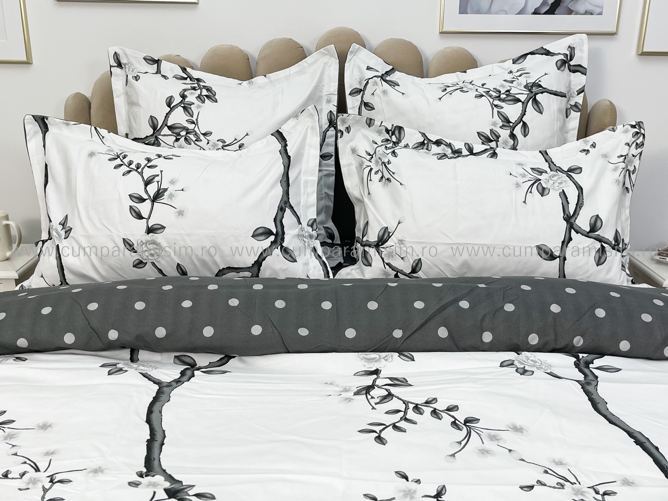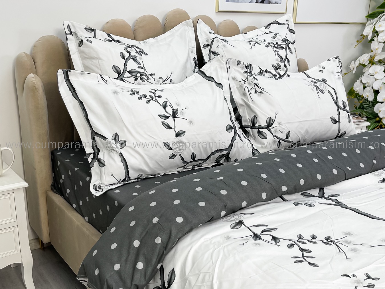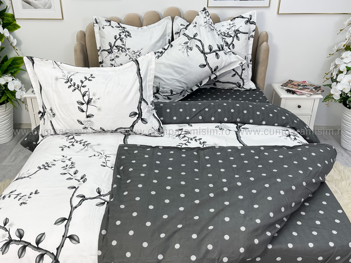 Lenjerie pat dublu, Finet, 6 piese, Gri, crengute