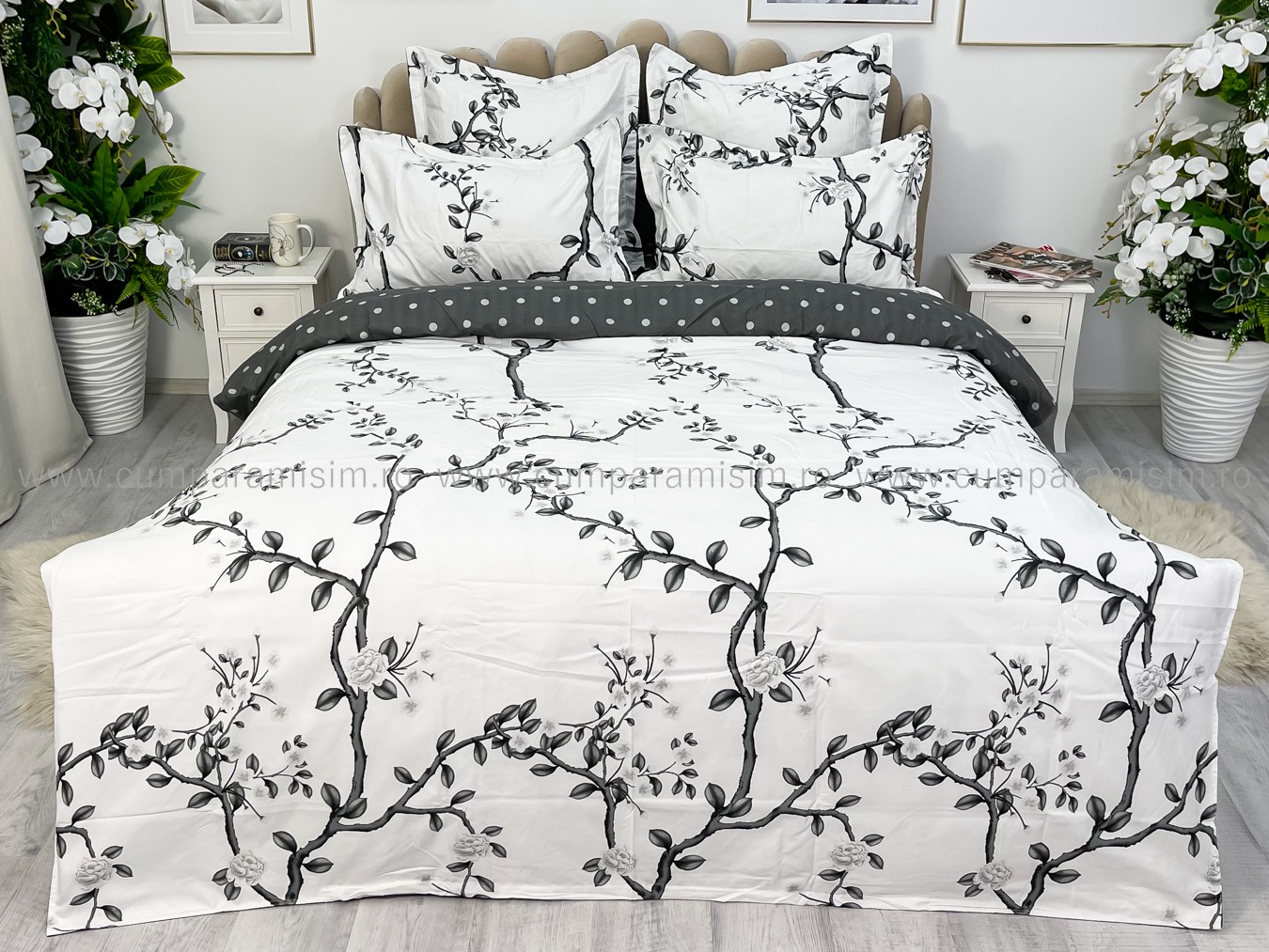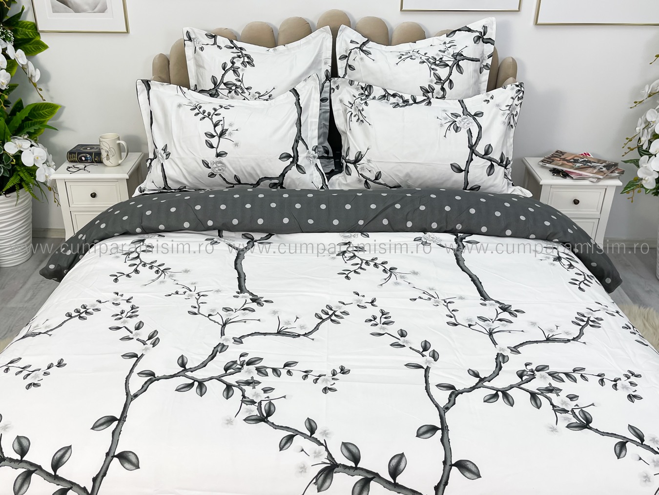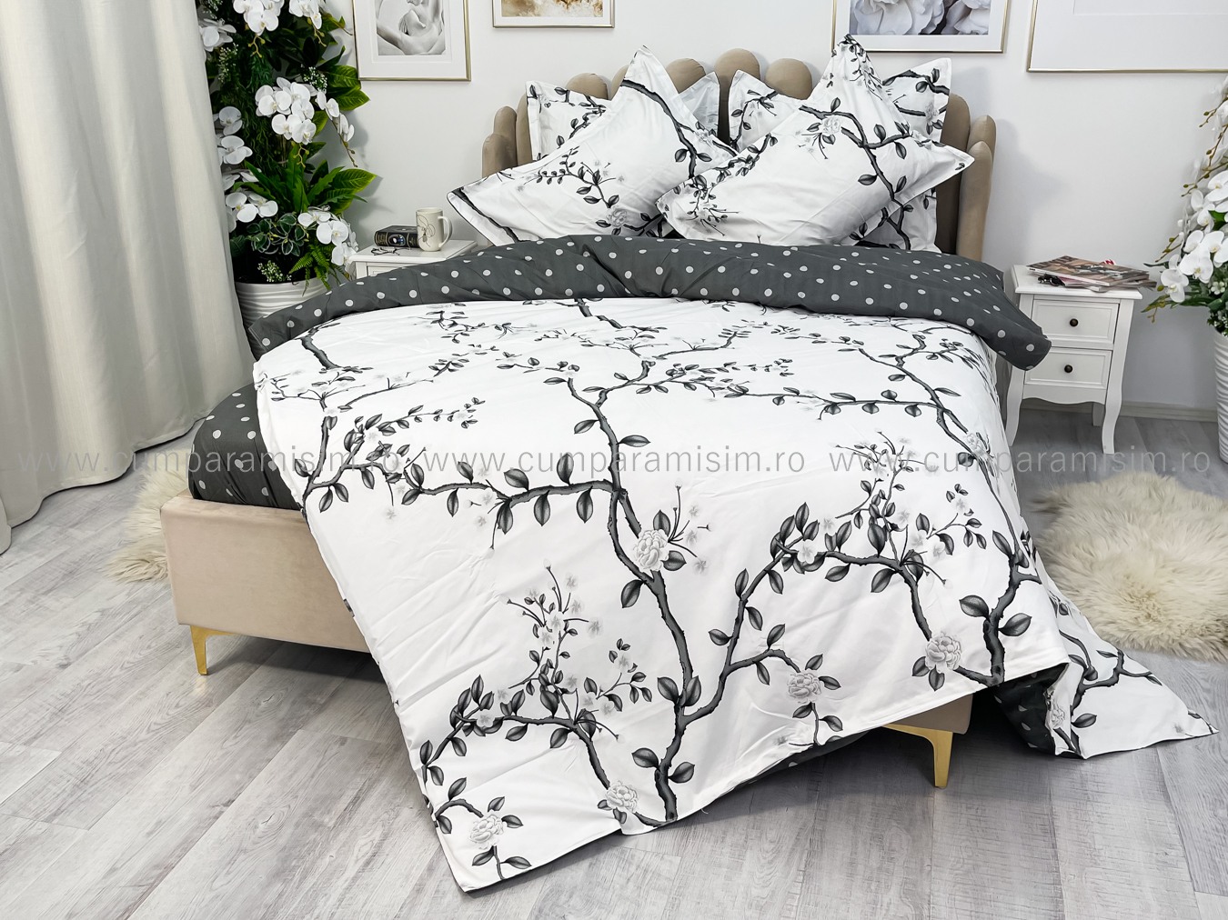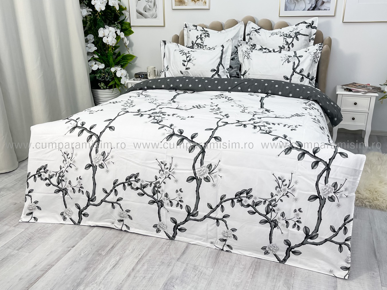Lenjerie pat dublu, Finet, 6 piese, Gri, crengute