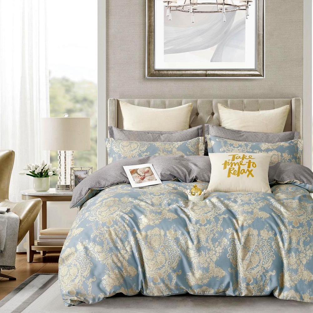 Lenjerie pat dublu, Finet, 6 piese, Gri, model oriental