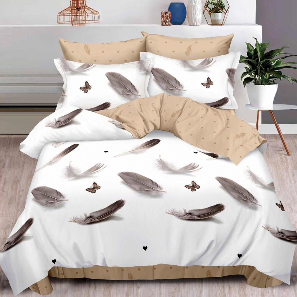 Lenjerie pat dublu, Finet, 6 piese, Gri, pene, fluturi, inimioare