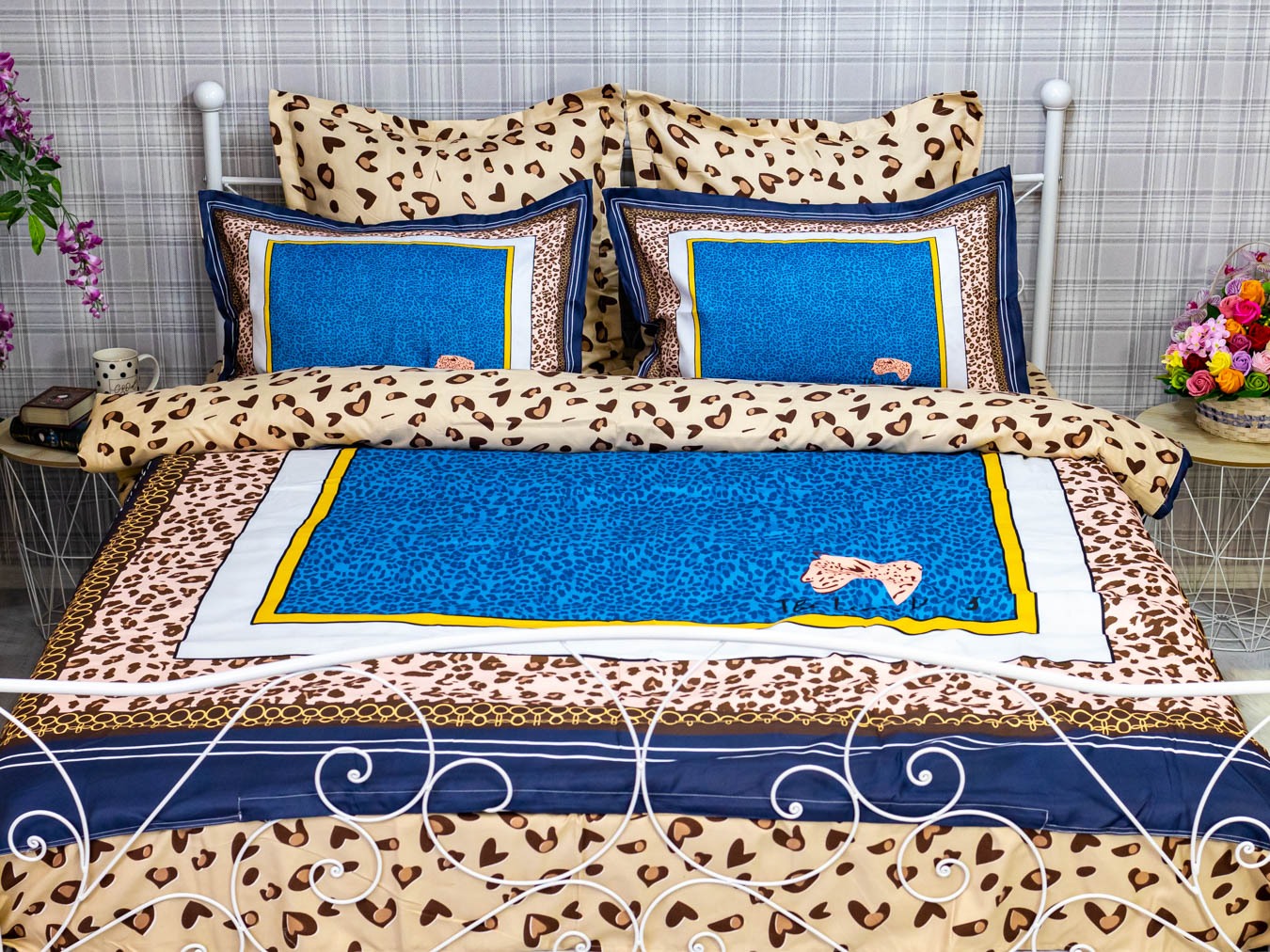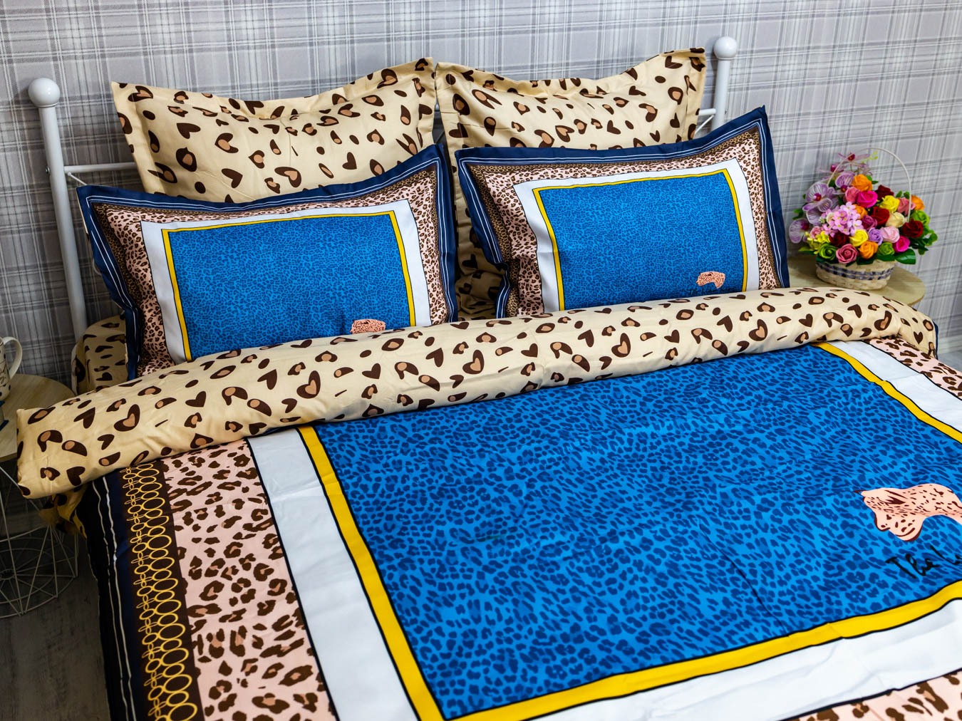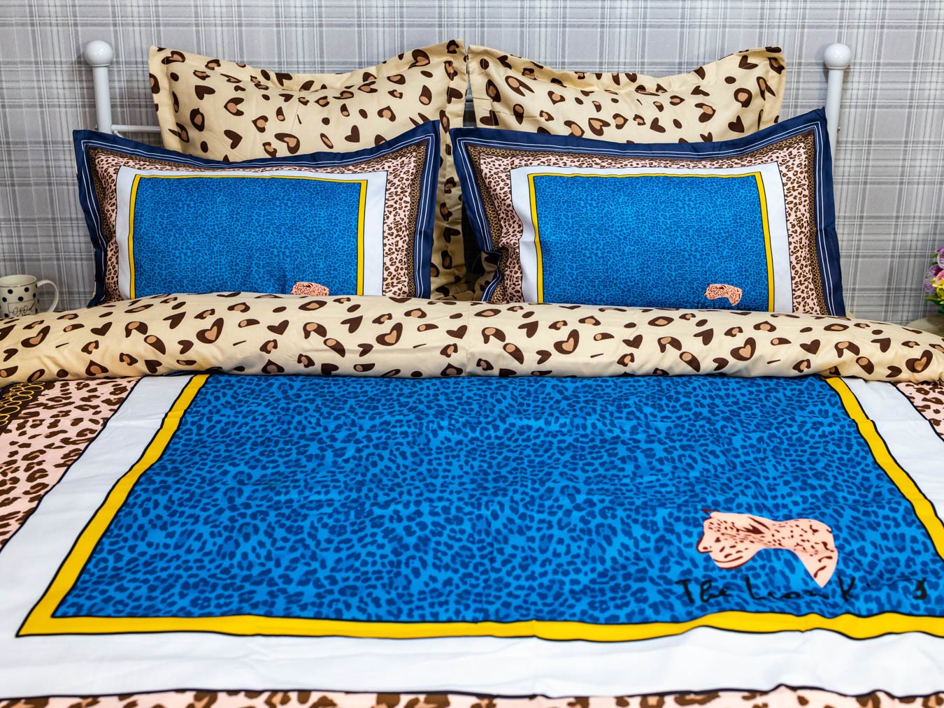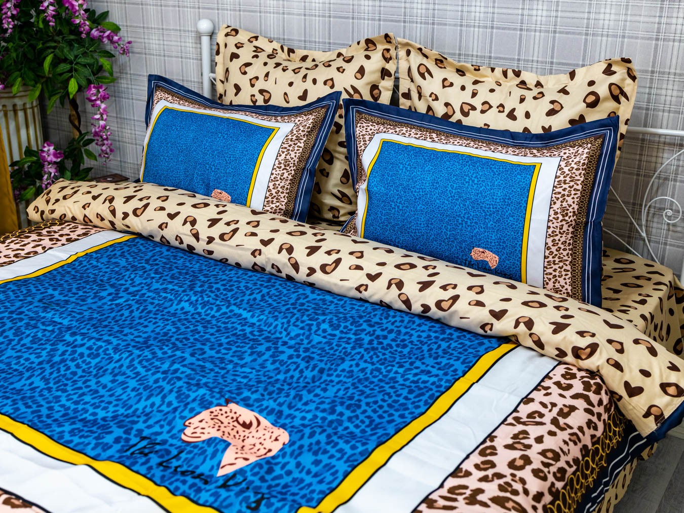 (OFERTA TRIO) Lenjerie pat dublu, FINET, 6 piese, IDENTICA CU POZA, Maro, animal print