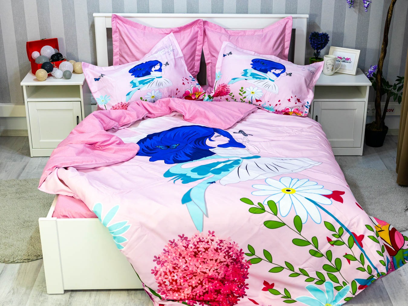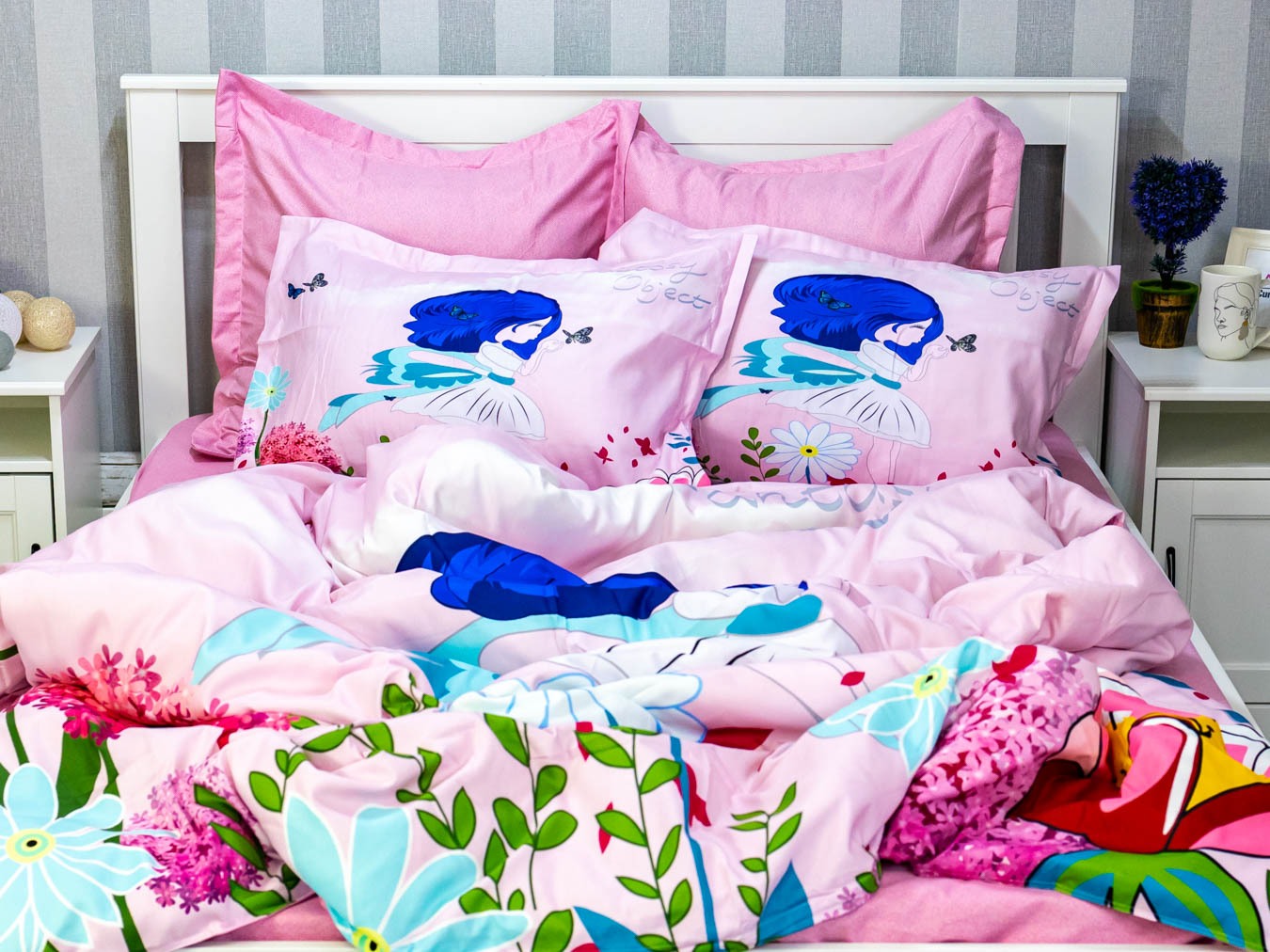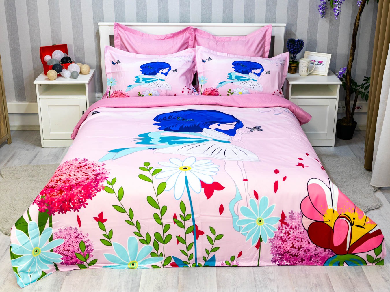 (OFERTA TRIO) Lenjerie pat dublu, FINET, 6 piese, IDENTICA CU POZA, Roz, flori
