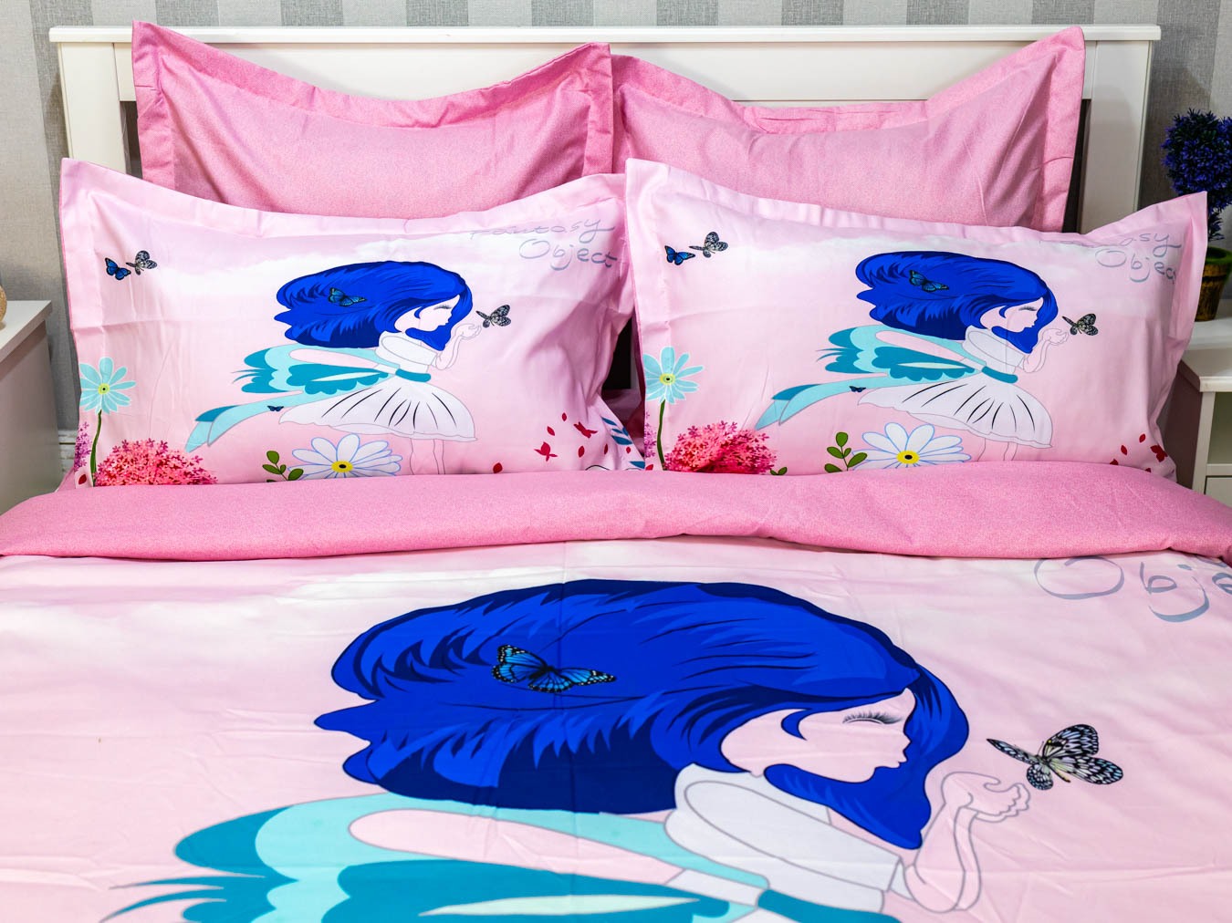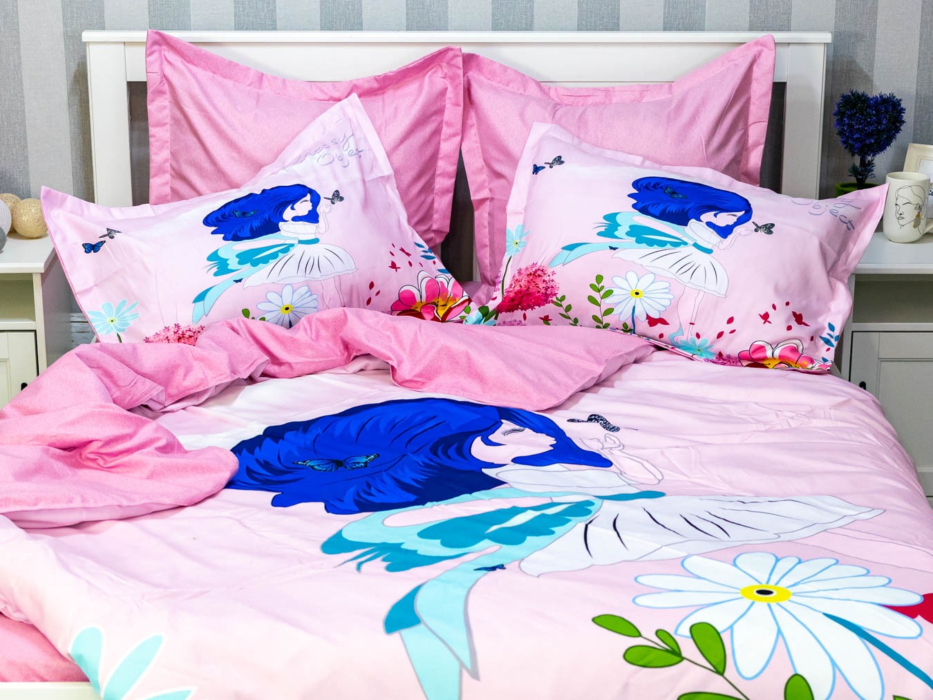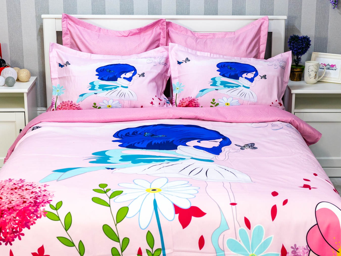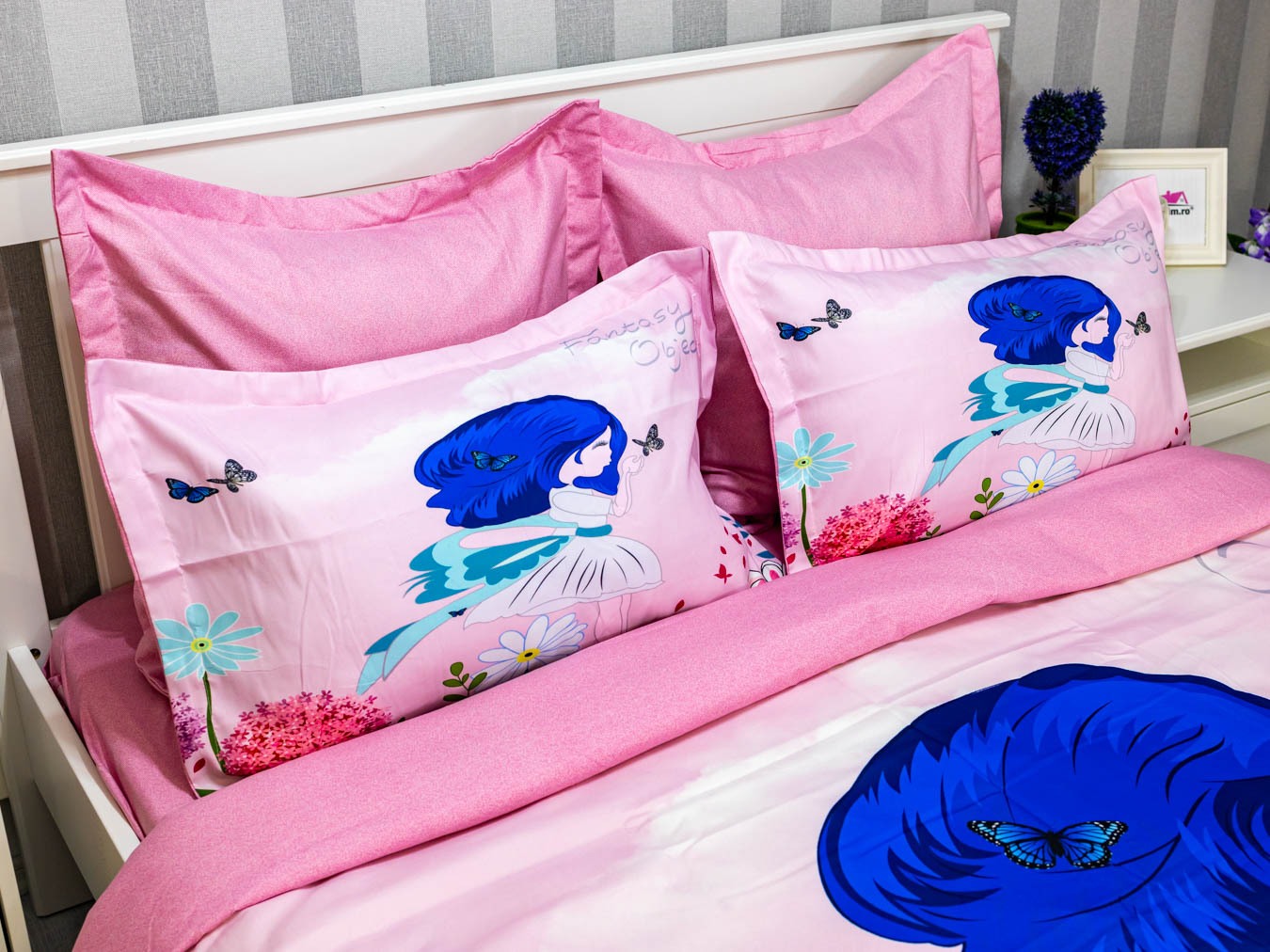 (OFERTA TRIO) Lenjerie pat dublu, FINET, 6 piese, IDENTICA CU POZA, Roz, flori