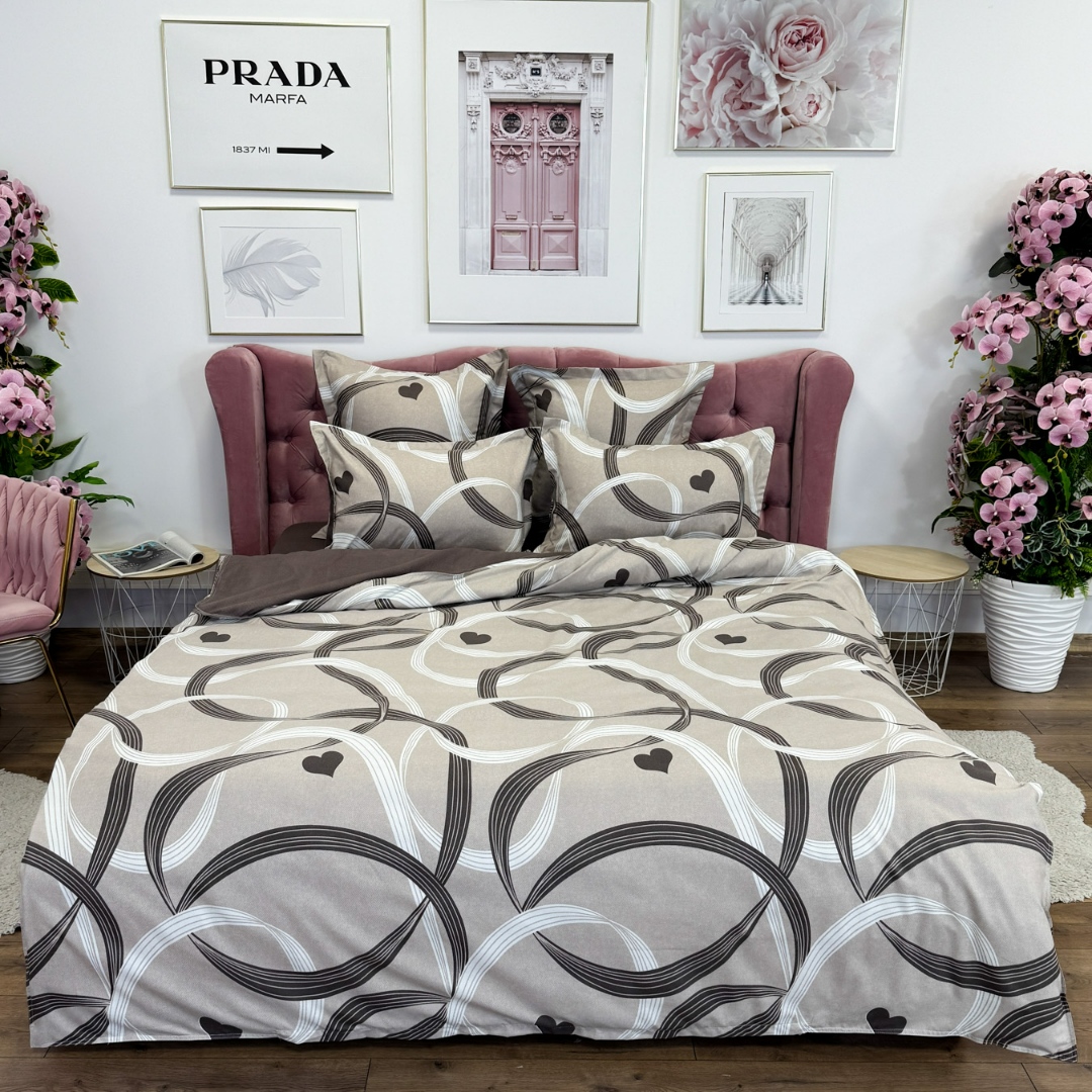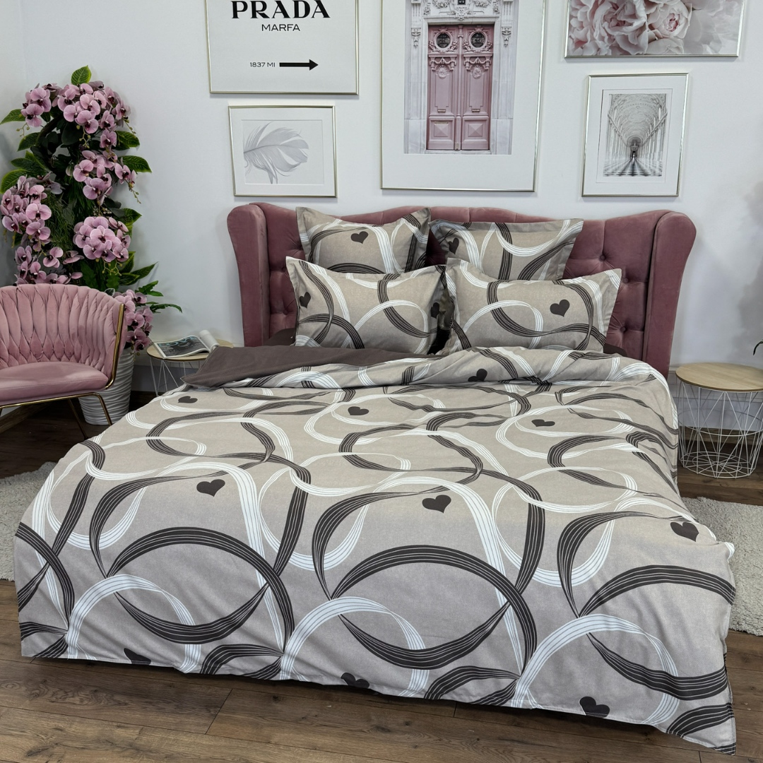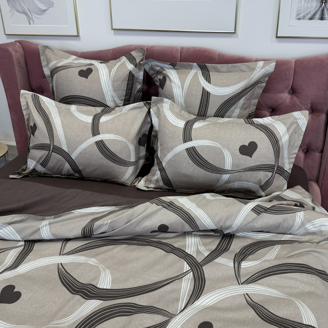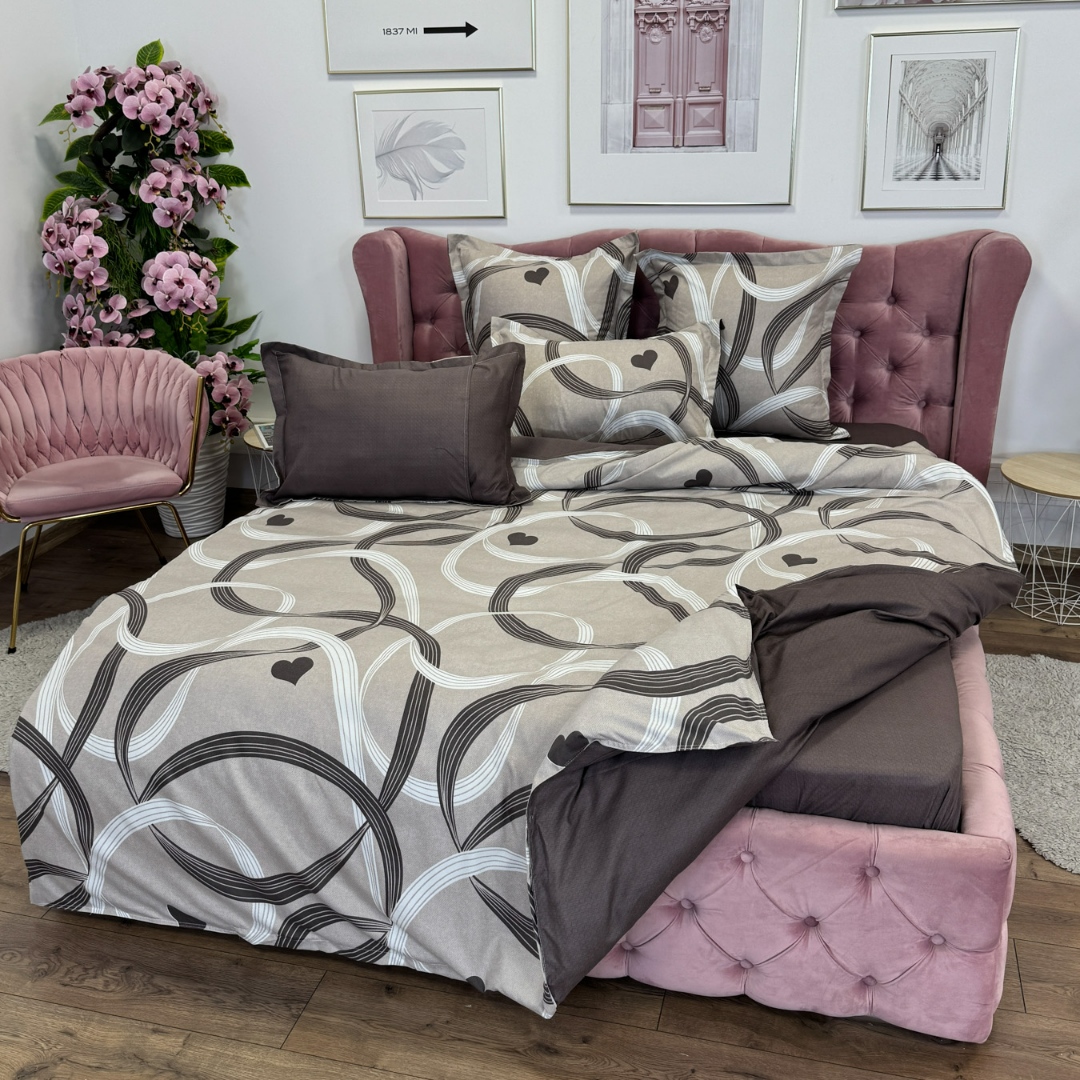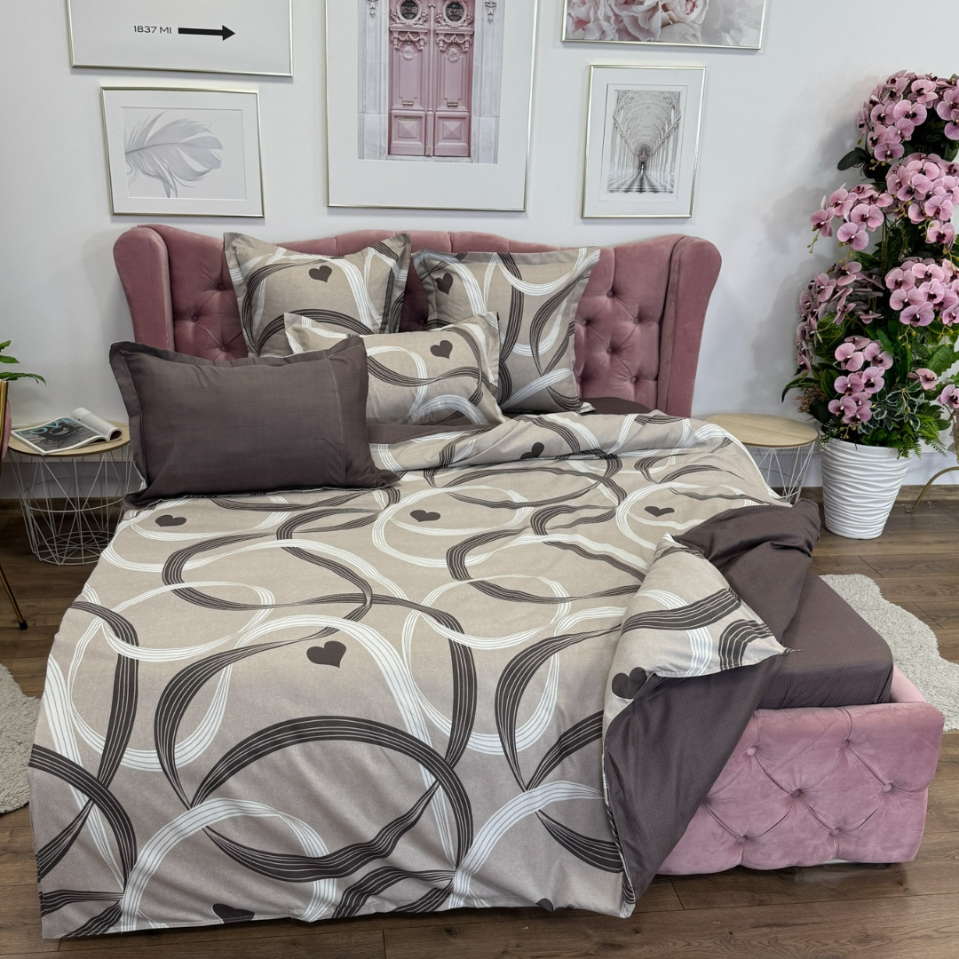 Lenjerie pat dublu, Finet, 6 piese, Maro, inimioare