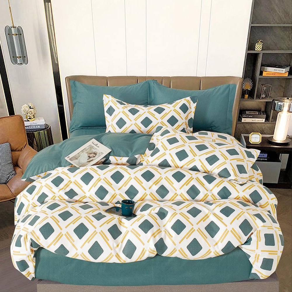 (OFERTA TRIO) Lenjerie pat dublu, FINET, 6 piese, Verde, romburi
