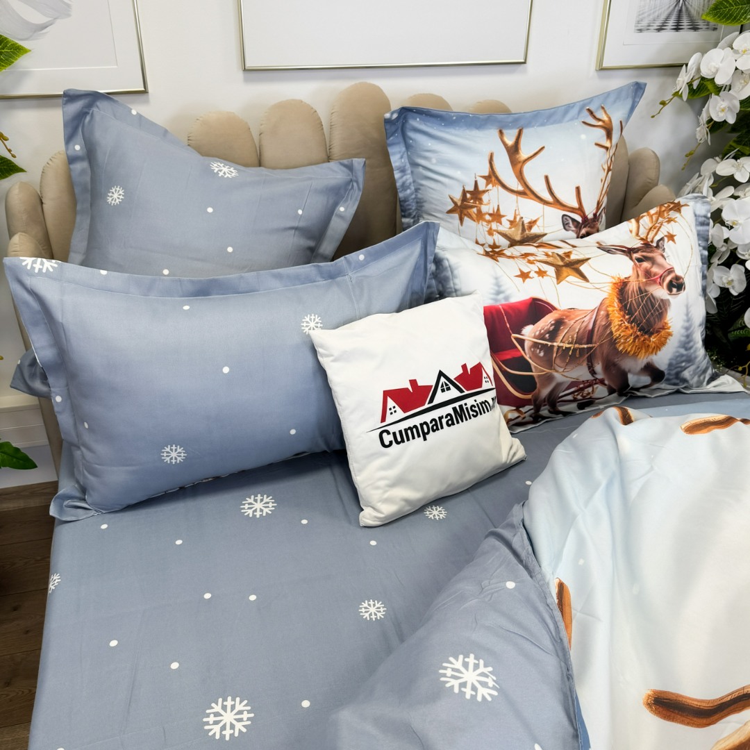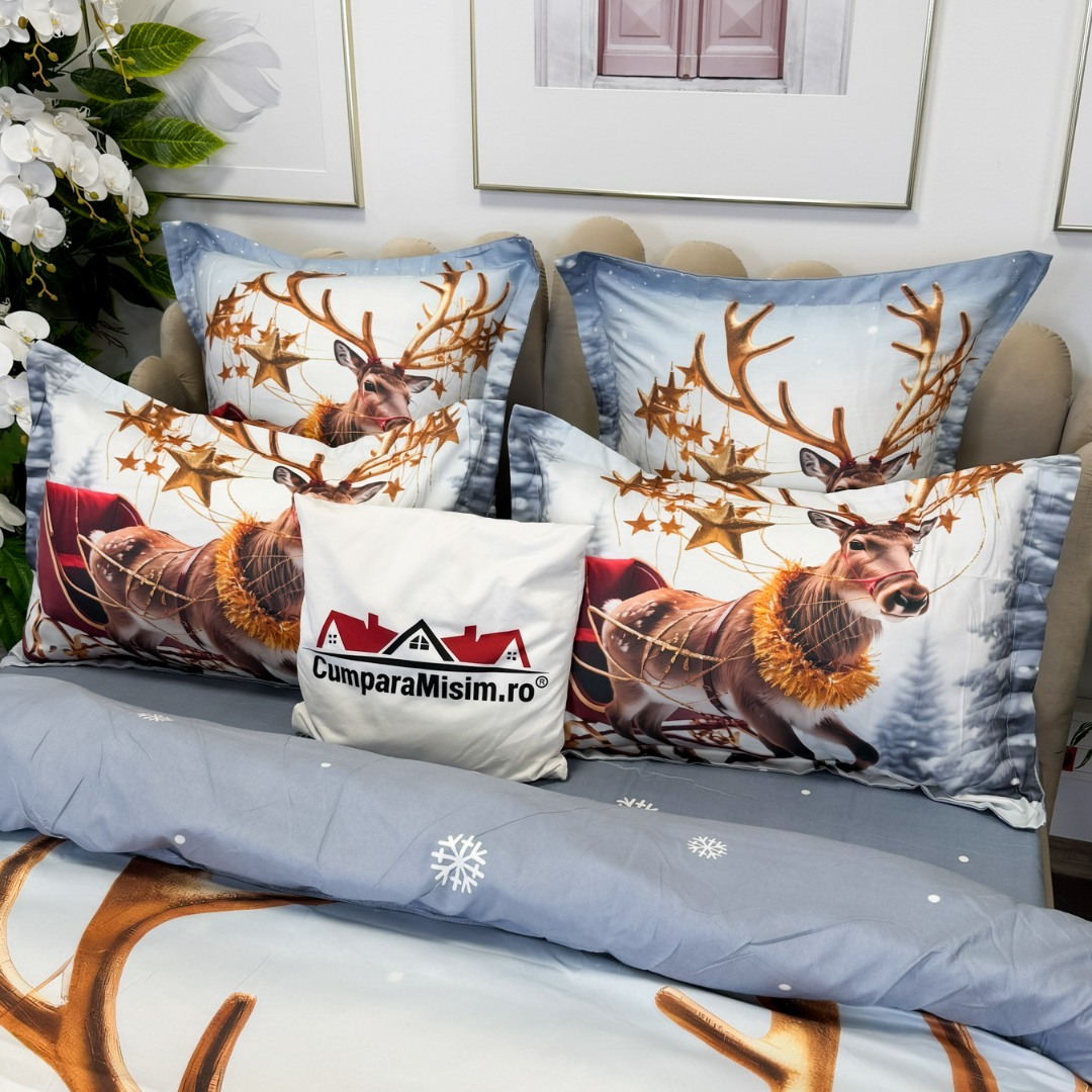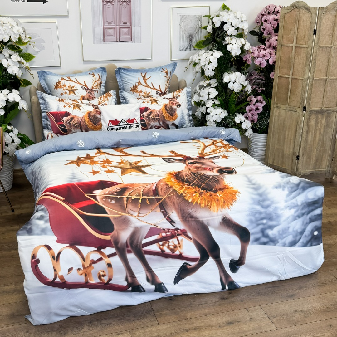 Lenjerie de pat Craciun din bumbac 100% finet - Confort si Eleganta Festiva Transforma-ti dormitorul intr-un colt de poveste de Craciun cu aceasta lenjerie de pat din bumbac 100% finet, imprimata cu motive festive exact asa cum sunt prezentate in poza de produs. Setul aduce nu doar un design spectaculos, ci si un confort maxim, datorita materialului de inalta calitate. Finetul este cunoscut pentru textura sa moale, neteda si placuta la atingere, oferind un somn odihnitor si o senzatie